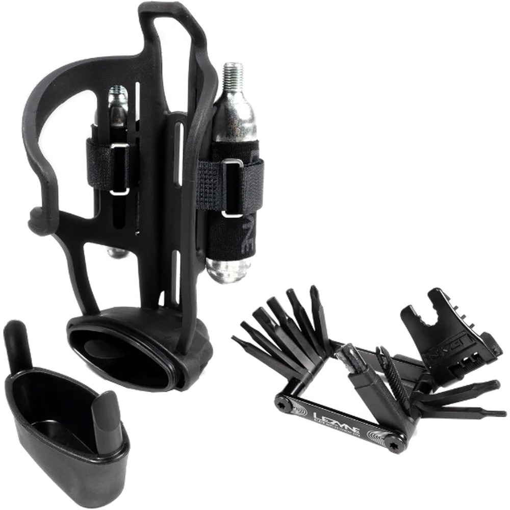 W zestawie znajduje się zaawansowany multitool V PRO 17, który oferuje szeroki zakres kluczy niezbędnych do polowych napraw, w tym skuwacz do łańcucha oraz narzędzia do obsługi systemów tubeless. Całość dopełniają dwa naboje CO2 16g umieszczone w dedykowanych uchwytach po bokach koszyka, co czyni ten produkt najbardziej kompletnym akcesorium na rynku.