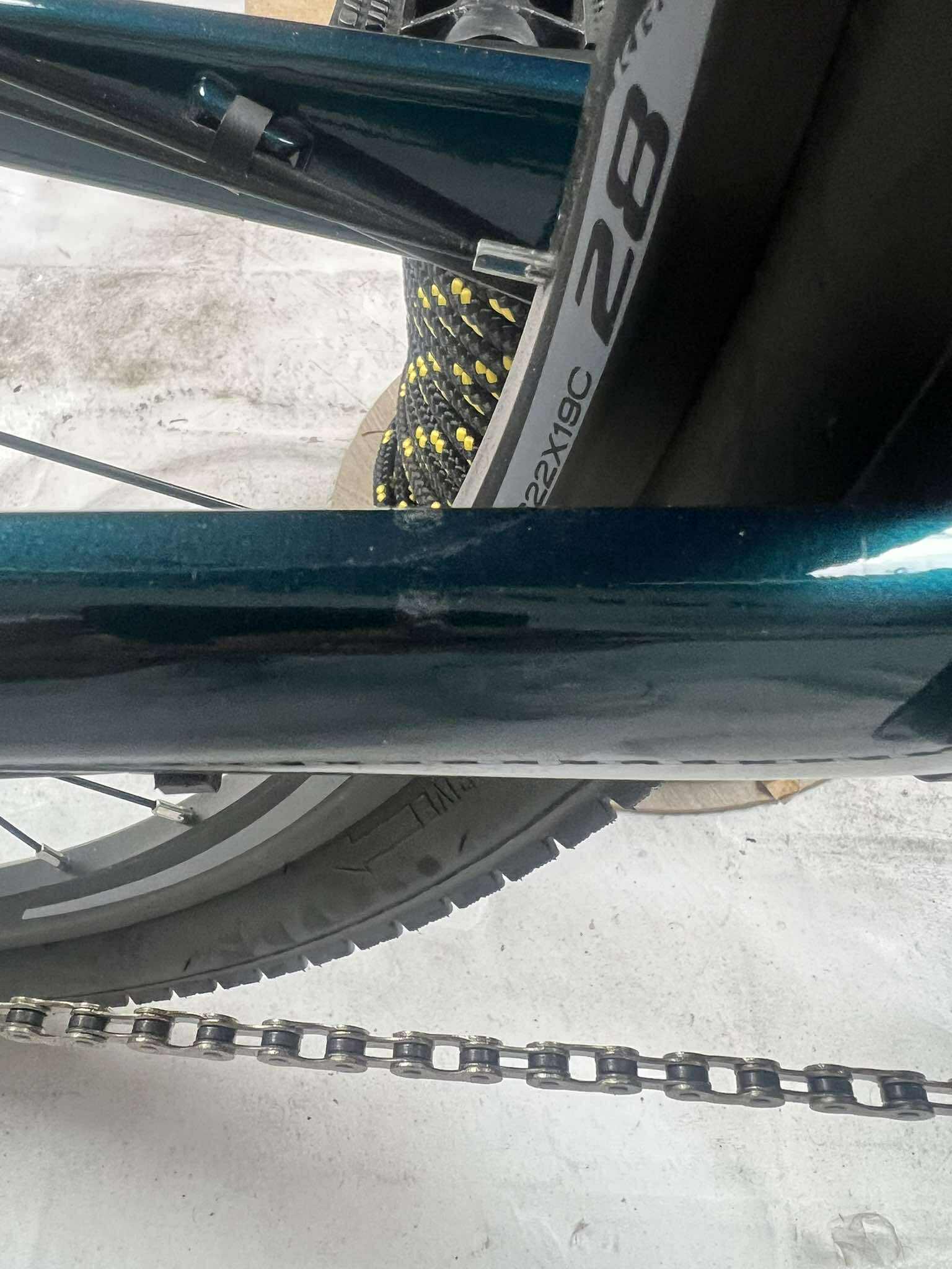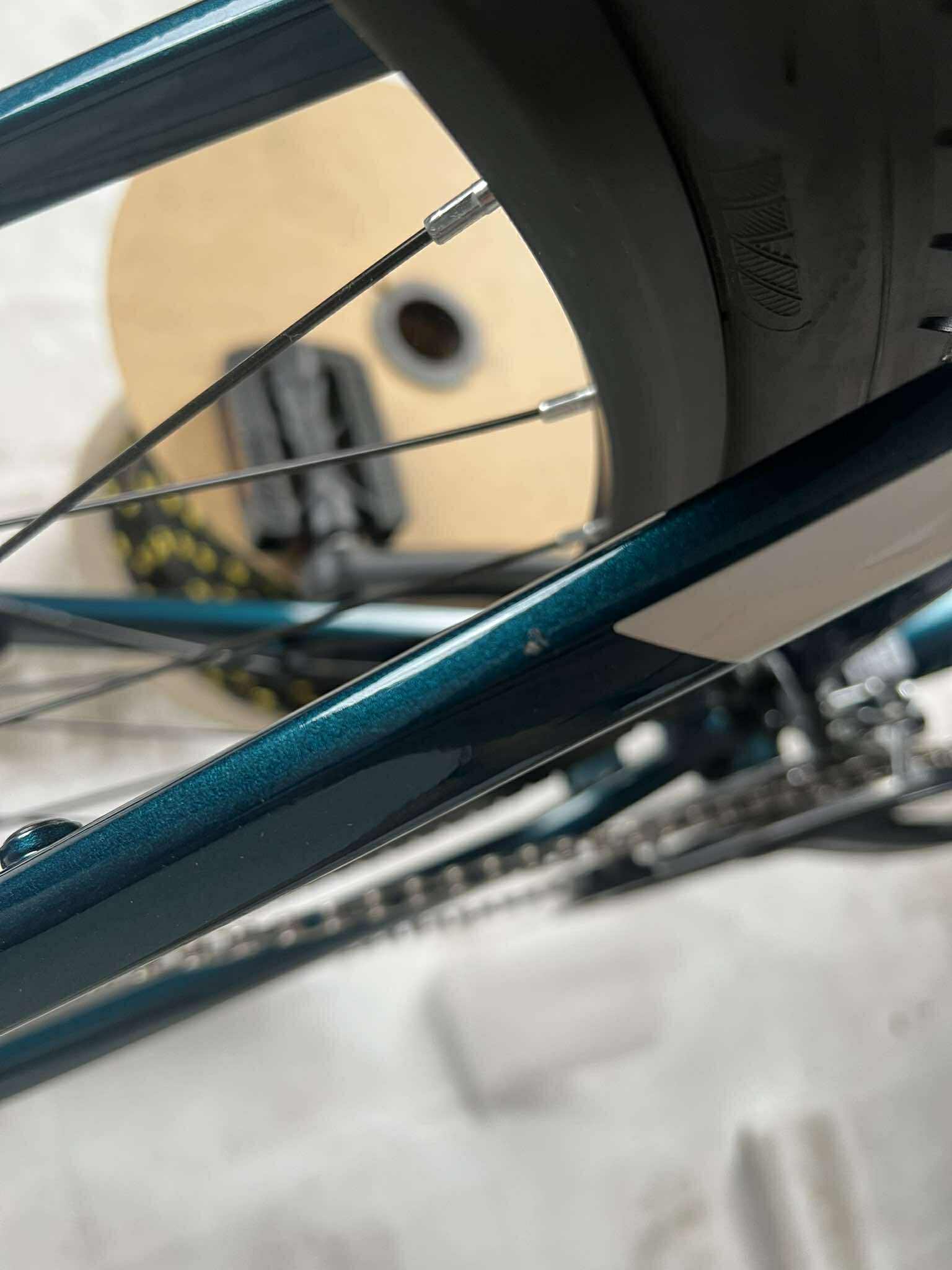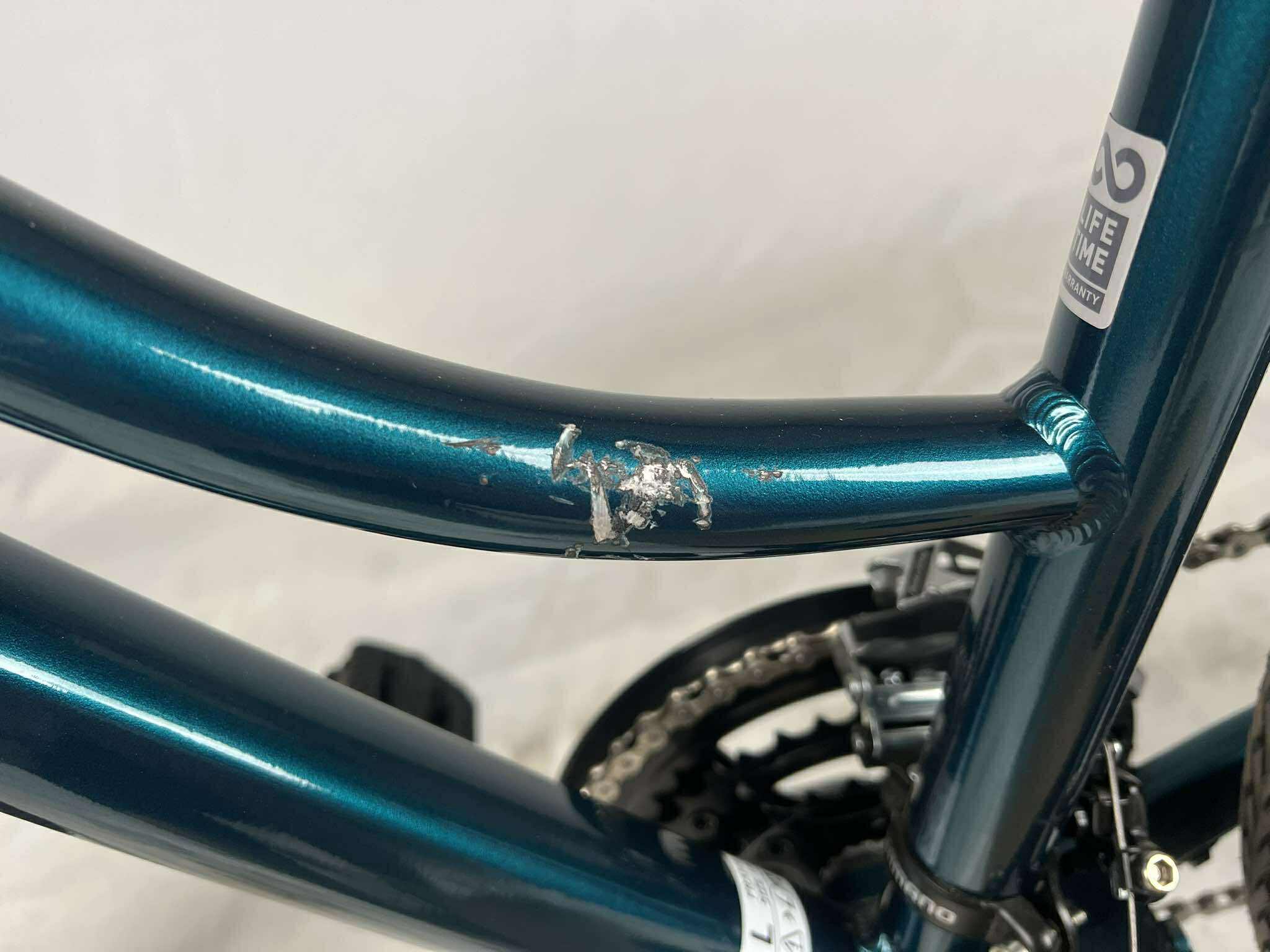 Rower Outletowy nieużywany , posiada lekkie odpryski i lekkie zadrapania na trójkącie tylnym oraz posiada uszkodzenie lakiernicze na środku dołu ramy. Proszę zapoznać się z zdjęciami roweru.