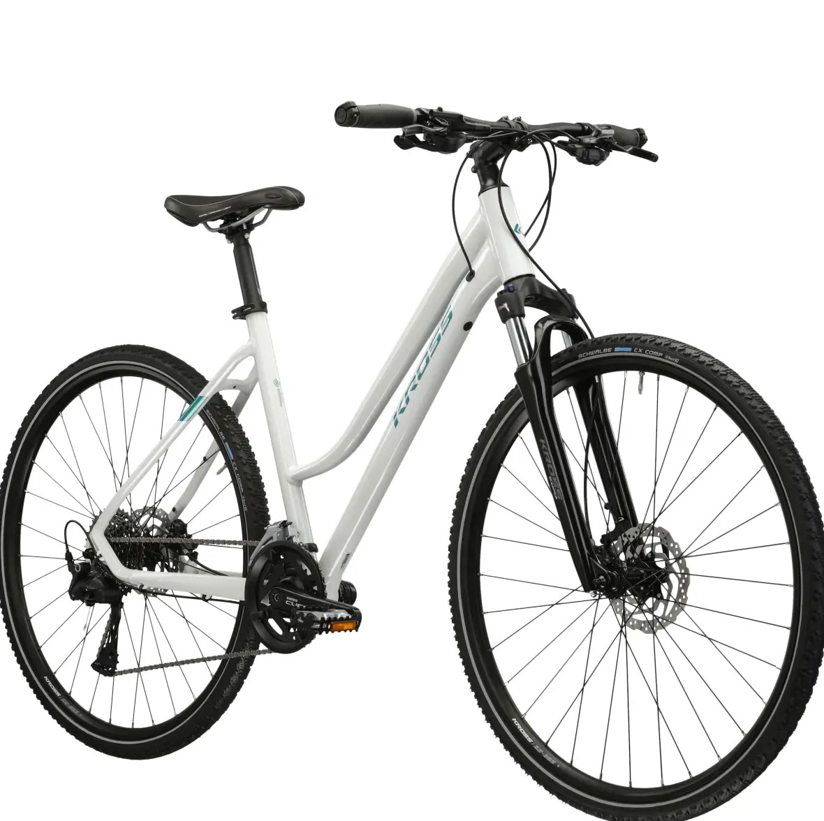 Rower crossowy damski Kross Trans 7.0 2024 to prawdziwy hit na rynku. Lekka aluminiowa rama, bardzo dobre i wyposażenie sprawdza się podczas wielogodzinnych wycieczek w mieście i wypraw poza zurbanizowane obszary. Solidny napęd zbudowany na bazie grupy Cues(nowe wcielenie Deore) z 20 przełożeniami, zapewni doskonałą precyzję działania, wysoką trwałość oraz łatwość w serwisie. Hydrauliczne hamulce tarczowe Shimano, gwarantują szybką reakcję na nieprzewidziane sytuacje, niezależnie od warunków atmosferycznych. Oczywiście długodystansowy rower turystyczny powinien odznaczać się wysokim komfortem jazdy, tu konstruktorzy zadbali o to przez komfortową pozycję na rowerze, niezwykle wygodne siodło Selle Royal Lookin oraz amortyzowany widelec z blokadą skoku. Zobacz film poniżej.