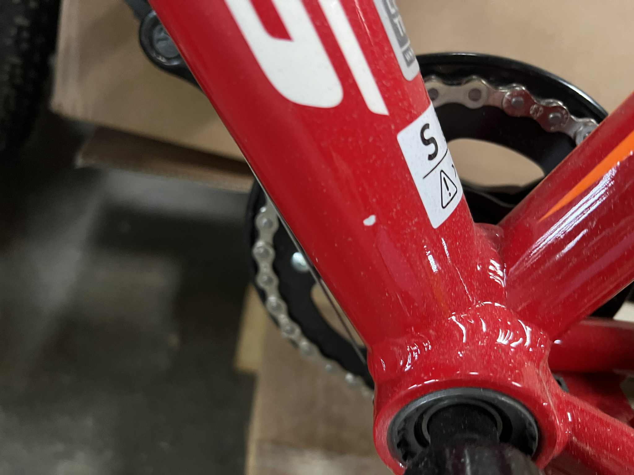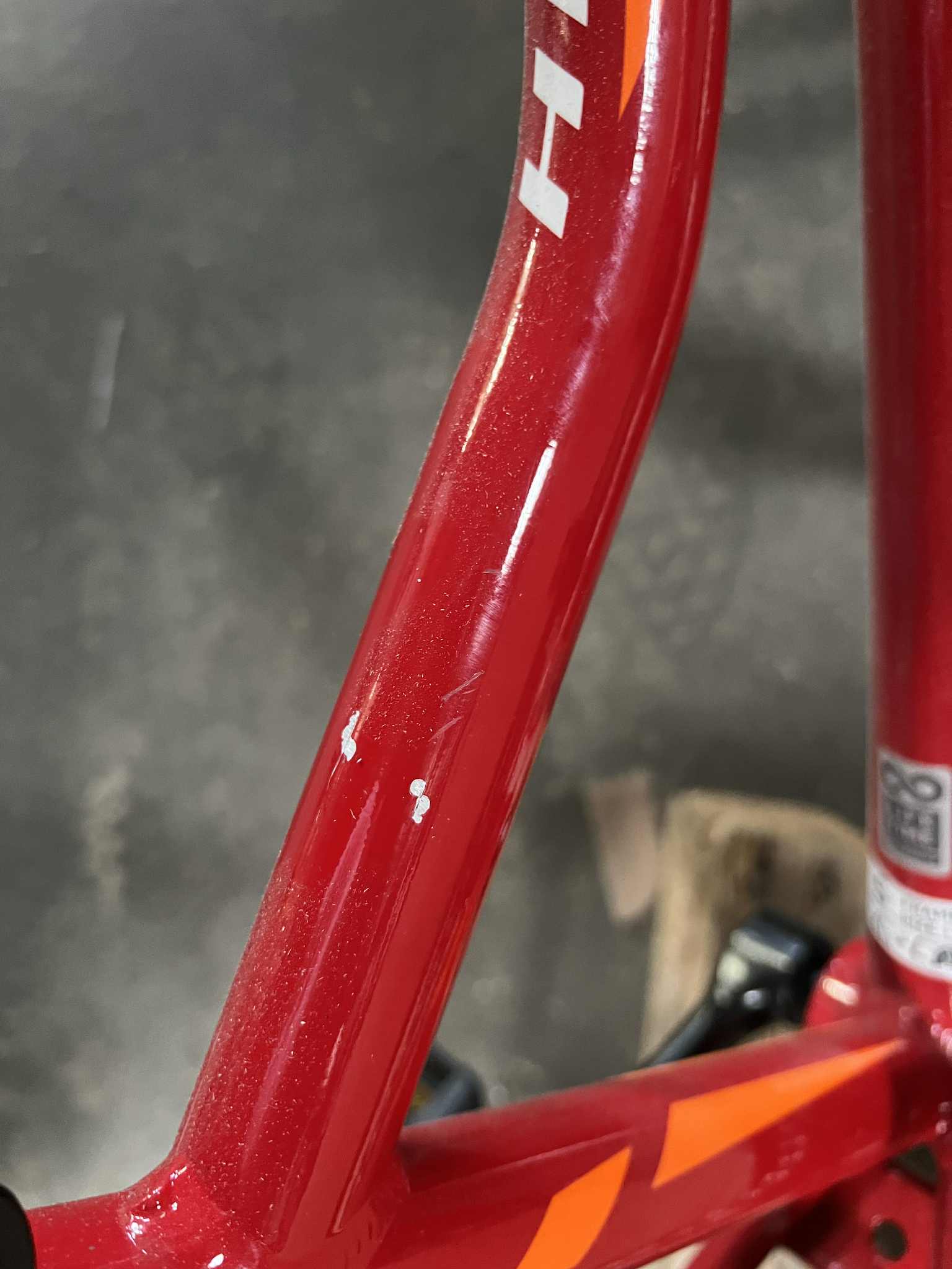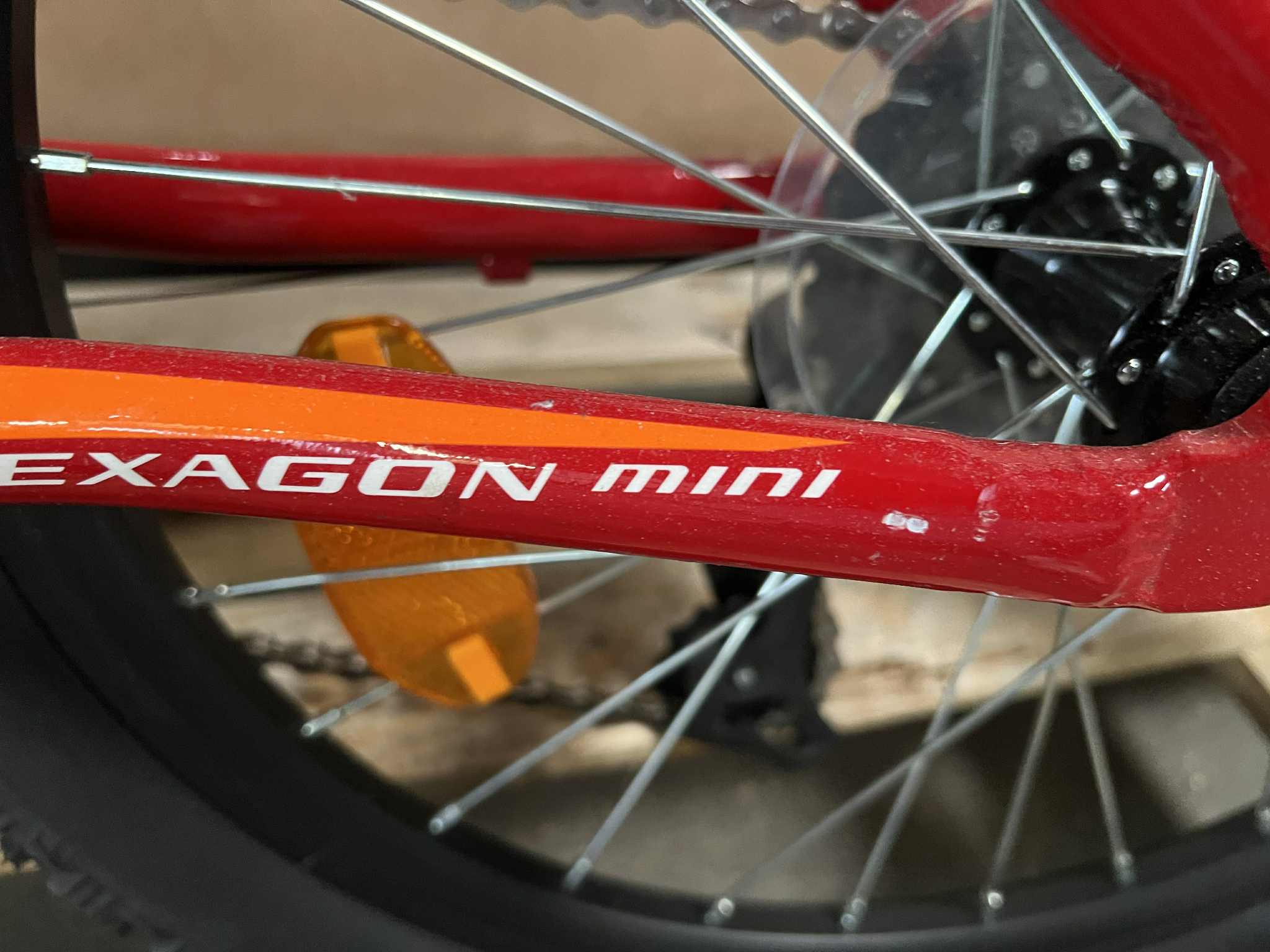 Rower Kross Hexagon mini 1.0 jest rowerem nowym nie używanym, posiada odrapany przedni widelec, podrapaną ramę posiada odpryski oraz odpryski na tylnym trójkącie.
