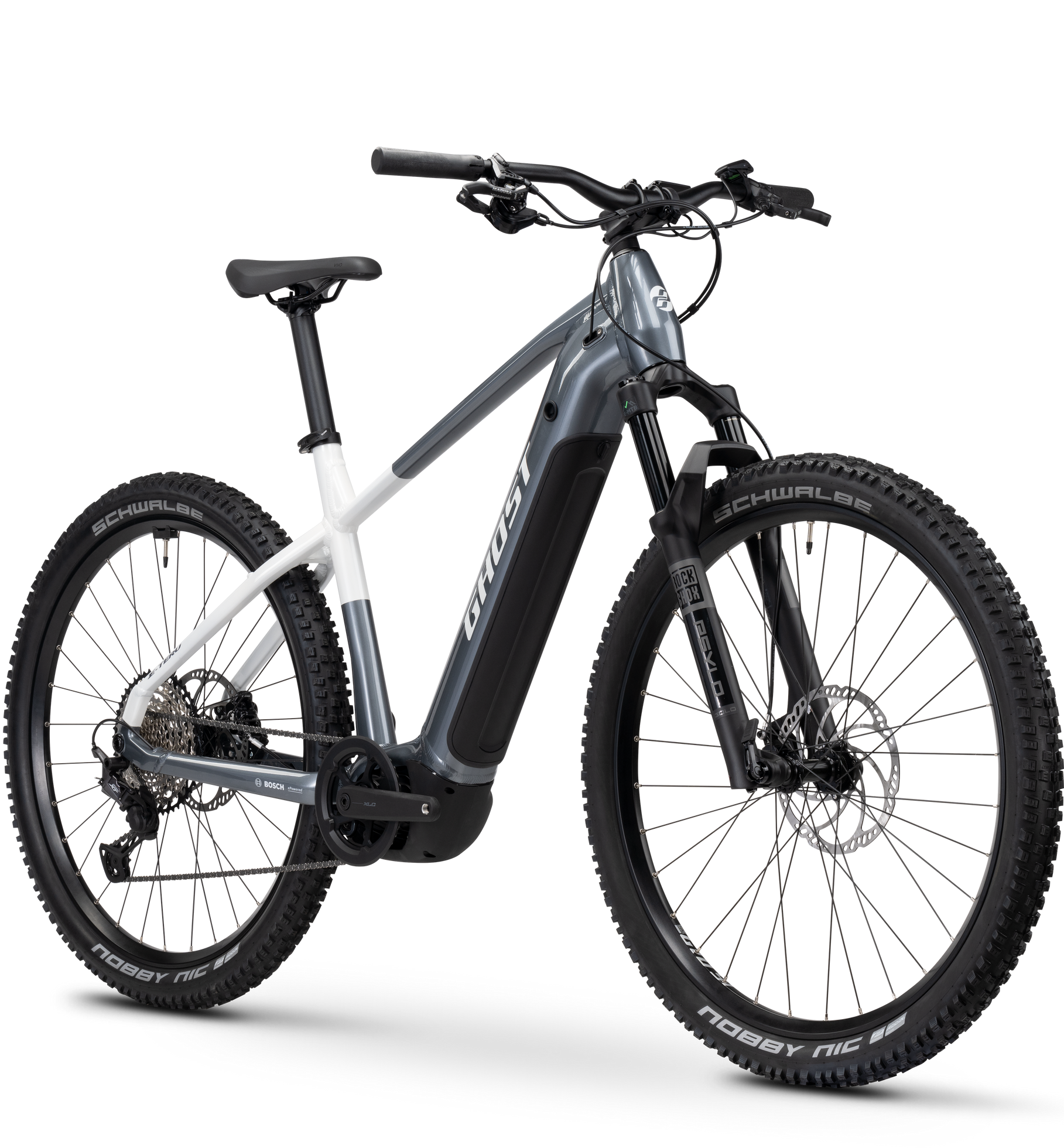 Ghost E-Teru Pro to mocny, nowoczesny e-MTB hardtail na kołach 29", który czuje się równie pewnie w codziennej jeździe po mieście, jak i na szutrach, leśnych ścieżkach oraz górskich szlakach. Aluminiowa rama o wysokiej sztywności, skok 120 mm z przodu i agresywniejsza geometria zapewniają stabilność w terenie, a napęd Bosch Performance Line CX z baterią 800 Wh gwarantuje ogromny zasięg i pewność na długich podjazdach.