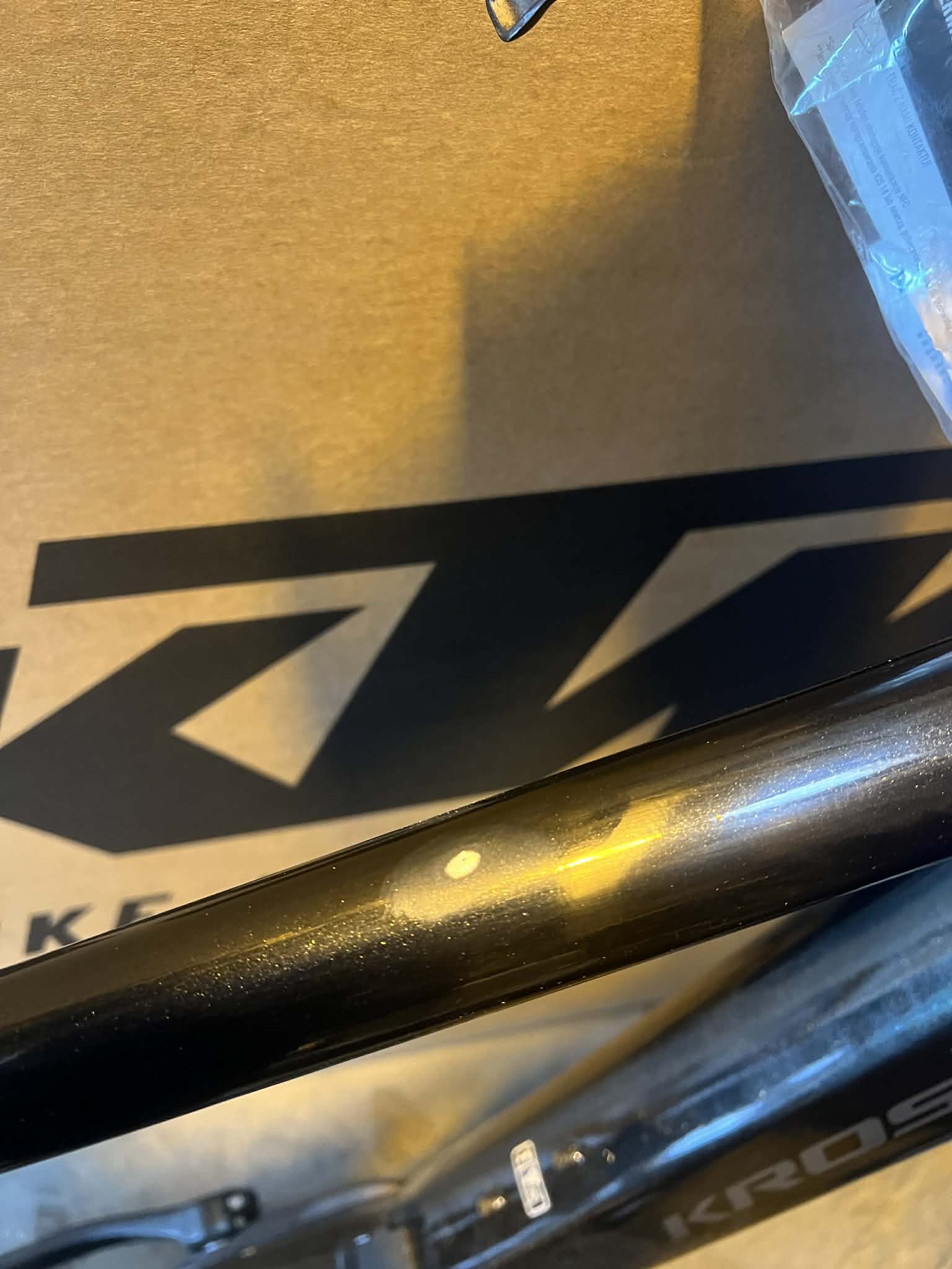 Rower jest nowy, posiada drobne odpryski lakiernicze i delikatne zarysowania.
