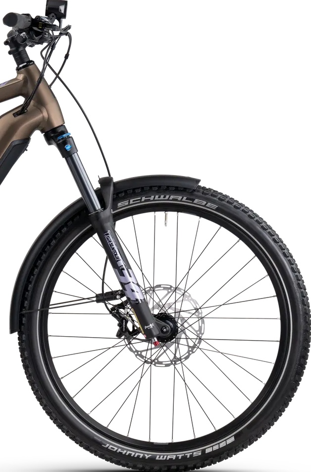 - Wszechstronność e-SUV: cechy roweru górskiego i trekkingowego w jednym – szerokie opony i duży skok zawieszenia dla pewności w terenie oraz pełna funkcjonalność na co dzień.