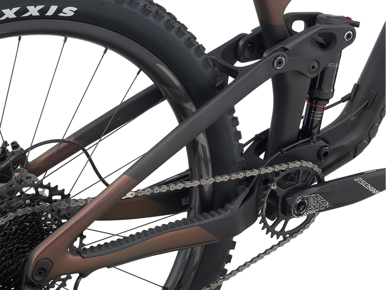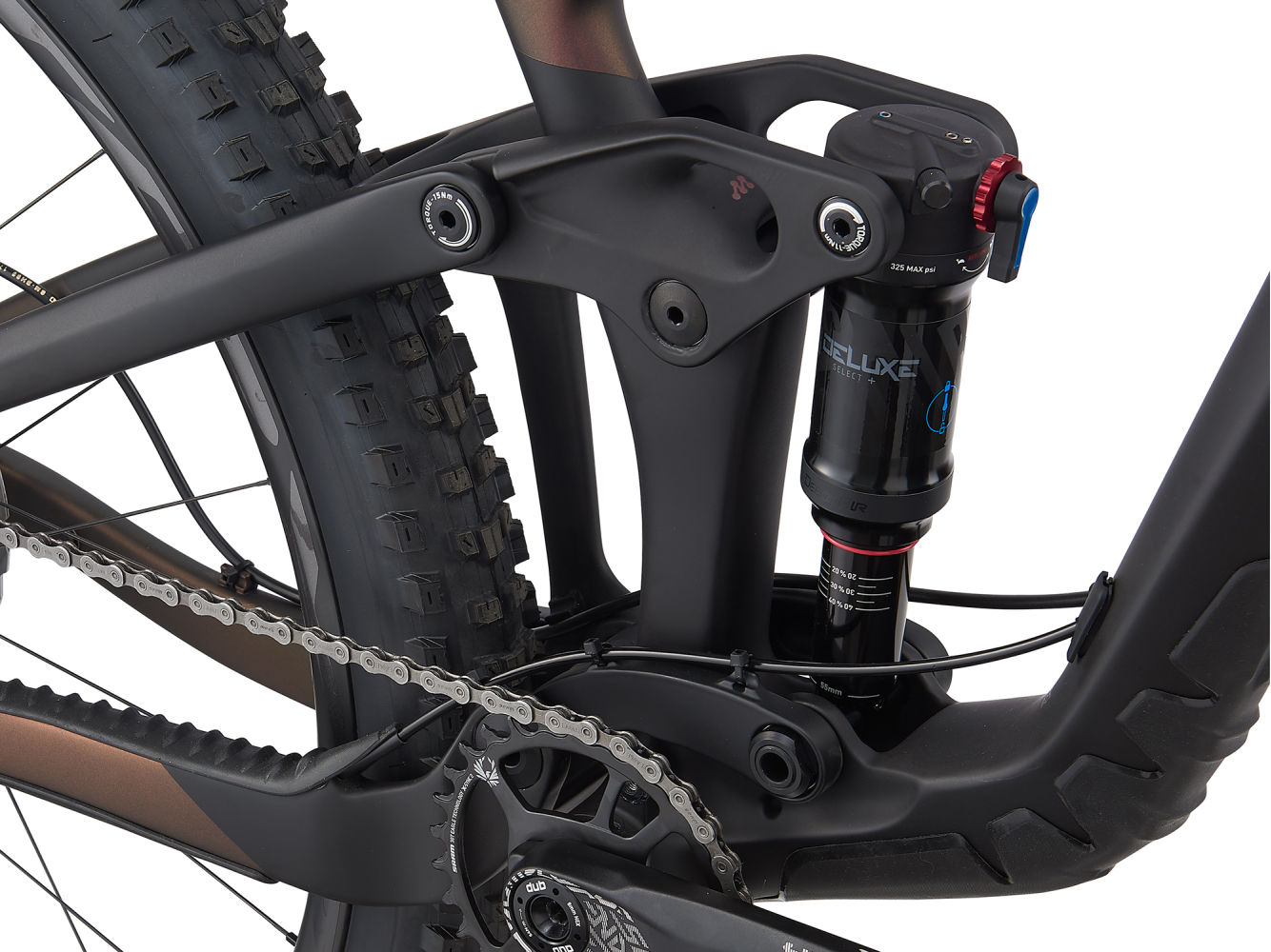 Nowa maszyna w serii Trance posiada zawieszenie o większym skoku dla dodatkowej kontroli na najbardziej wymagających szlakach. W pełni kompozytowa rama jest przeznaczona dla 135 mm skoku z tyłu i 150 mm z przodu. Tylne zawieszenie Maestro ma dwustopniowo regulowany łącznik zawieszenia z kompozytu Advanced Forged Composite oraz mocowanie trunnion. Łącznik zawieszenia wyposażony we flip chip umożliwia zmianę geometrii ramy do własnego stylu jazdy i terenu. Aby dostosować rower, można wybrać bardziej stromy lub łagodniejszy kąt główki ramy (66,2 lub 65,5 stopnia) oraz kąt rury podsiodłowej (77,9 lub 77,2 stopnia), co skutkuje obniżeniem suportu o 30 mm lub 40 mm. Całość opiera się na 29-calowych kołach dla dodatkowej stabilności w wymagającym terenie.