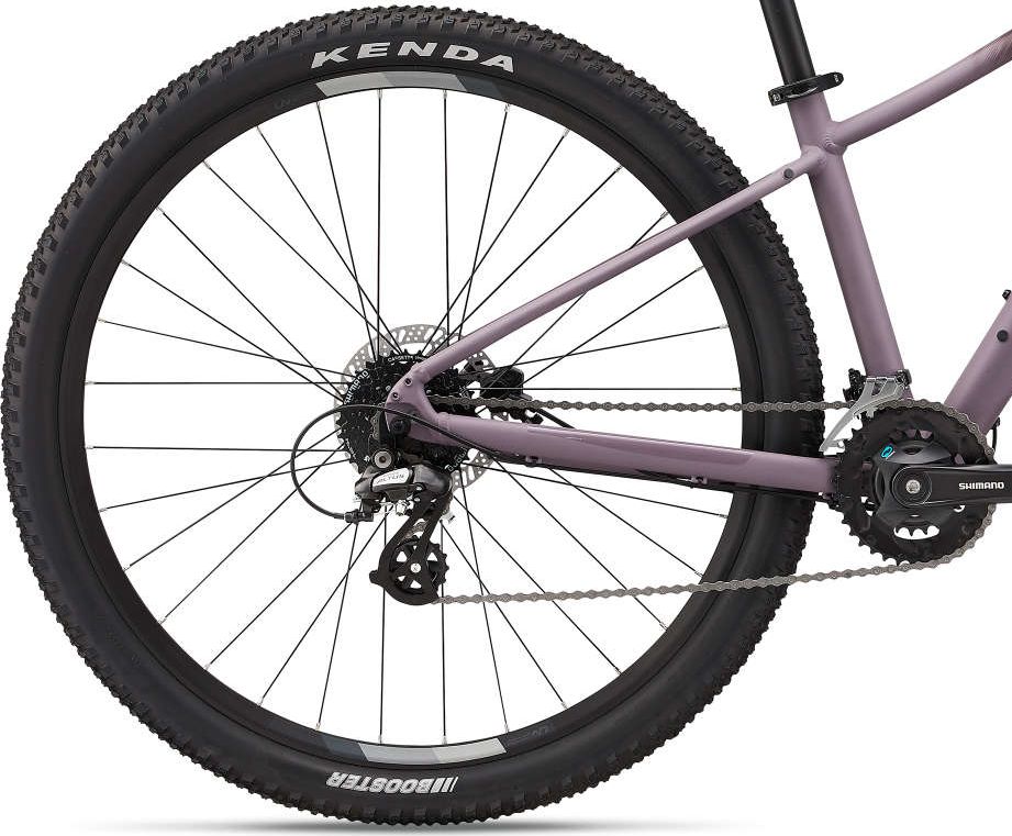 - Szerokie opony Kenda Booster (29”,27,5”) będące złotym środkiem między przyczepnością a prędkością jazdy