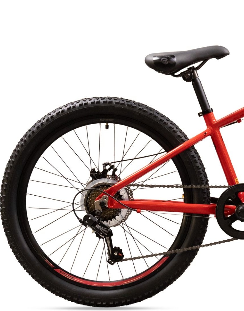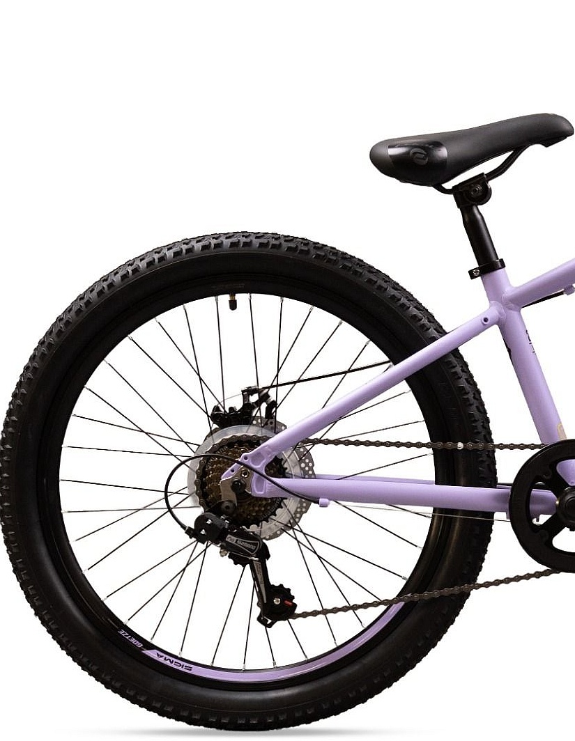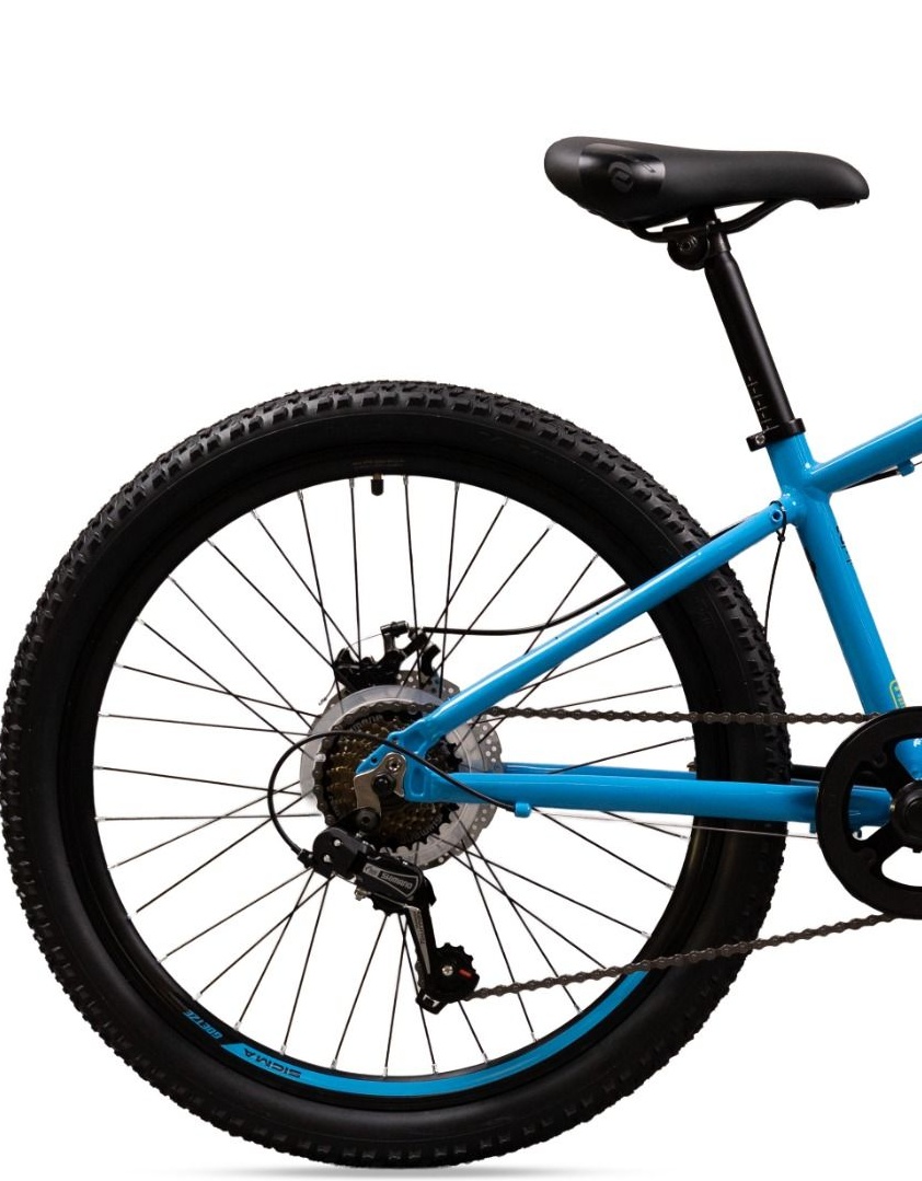 Stylistyka modelu Sigma 24" to kwintesencja nowoczesnego roweru górskiego (MTB), przeniesiona w skali do rozmiaru juniorskiego. Dynamiczna linia aluminiowej ramy, obecność amortyzatora, szerokie opony z agresywnym bieżnikiem i przede wszystkim – hamulce tarczowe – wszystko to składa się na wizerunek profesjonalnego, poważnego sprzętu. To rower, z którego Twoje dziecko będzie dumne.