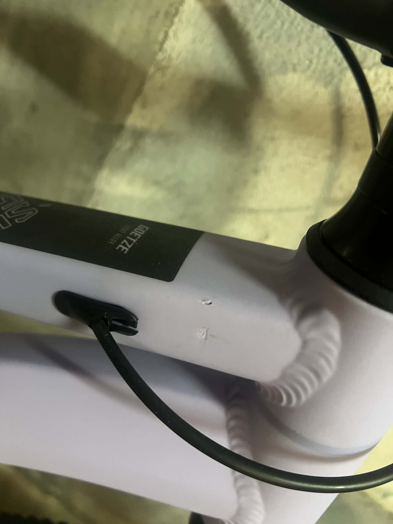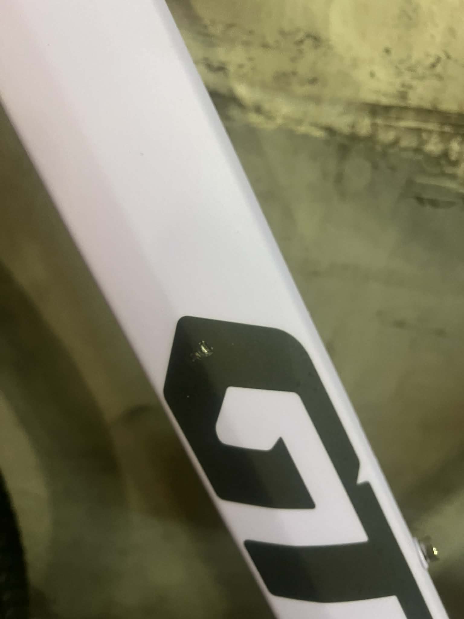 Rower posiada drobne wgniecenie oraz drobne uszkodzenie warstwy lakierniczej w górnej części ramy.