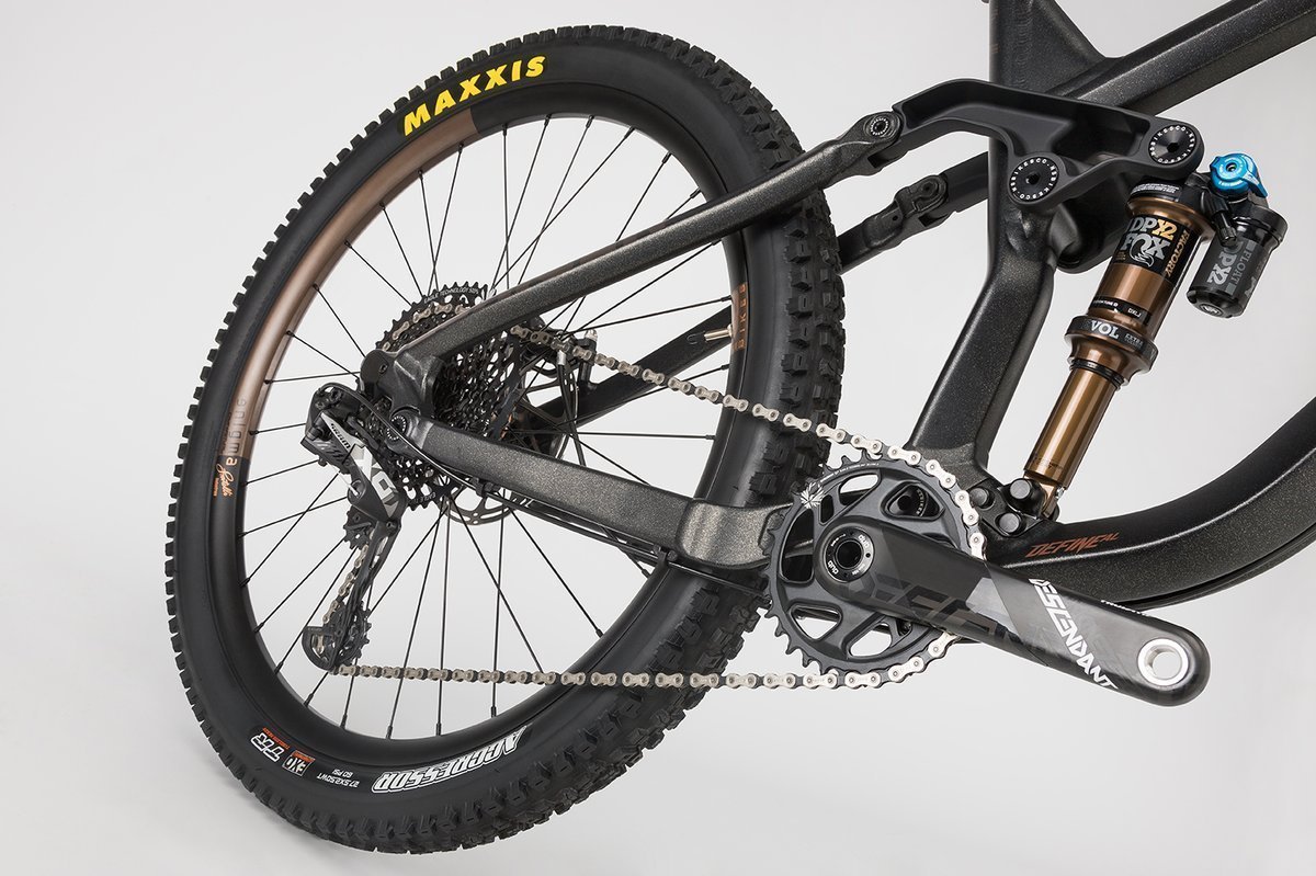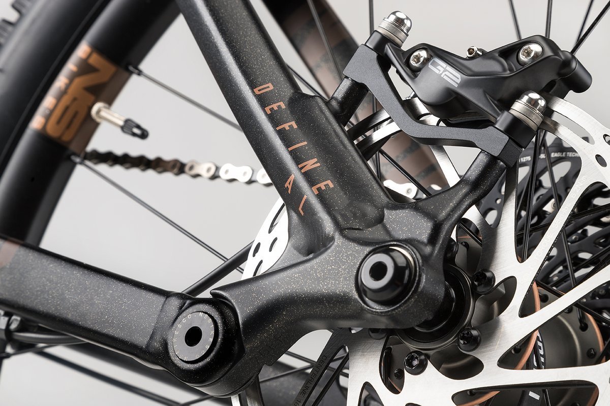 Po wielu testach i rozważaniach, postanowiono wprowadzić rozwiązanie, które nabiera sensu dla bardzo dużej ilości rider’ów. Połączenie dużego koła 29” z przodu i mniejszego 27.5” z tyłu, gwarantuje dobre prowadzenie po nierównym terenie i zwinność całej konstrukcji. Dodatkowo możemy zwiększyć skok ramy, bez obawy o konflikt tylnego koła z rurą podsiodłową. W pomiarach czasowych taka konfiguracja uzyskała najlepsze rezultaty, a szczególności w przypadku niskich rider’ów. Oczywiście nie zapomnieliśmy o tym, że jest to DEFINE! W tym modelu również znajdziemy hydroformowane rurki, Wzmocnione spawy, regulowaną wysokość suportu i pół-zintegrowane prowadzenie przewodów.