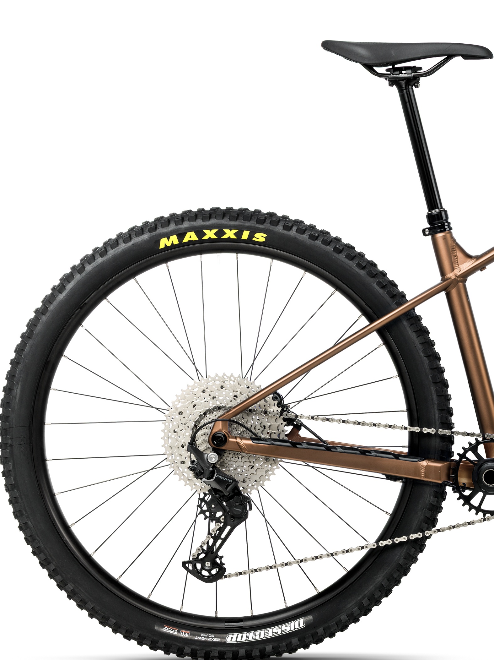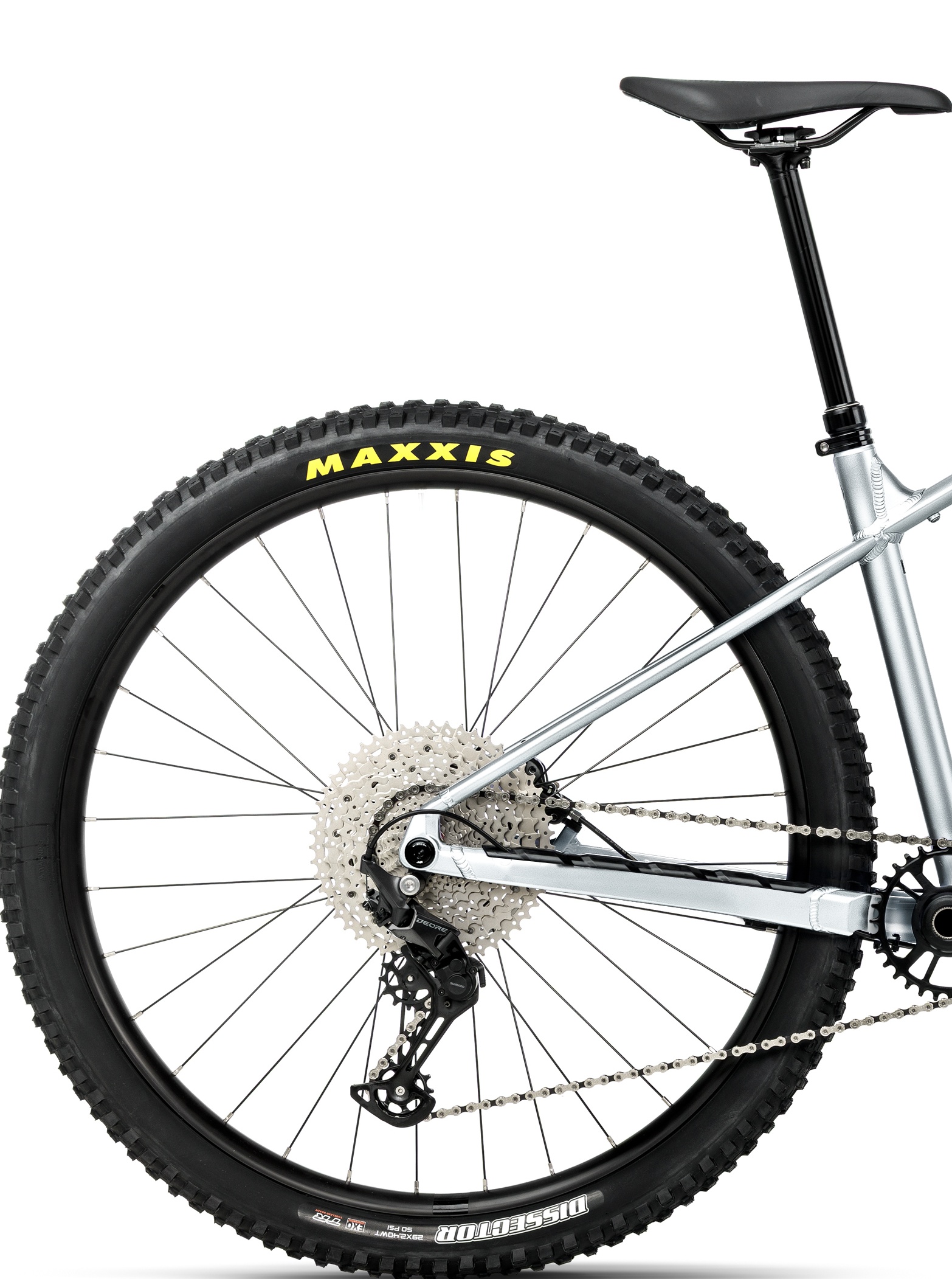 Laufey H30 toczy się na solidnych, aluminiowych kołach 29-calowych o szerokiej wewnętrznej średnicy obręczy 29c. Szerokie obręcze zapewniają lepsze ułożenie opony, co przekłada się na większą objętość, lepszą przyczepność i stabilność. Koła są oczywiście "Tubeless Ready", co oznacza, że możesz łatwo przejść na system bezdętkowy, by cieszyć się niższym ciśnieniem, lepszą trakcją i ochroną przed przebiciami. Fabrycznie zamontowane opony to Maxxis Dissector 2.40" 60TPI EXO/TR – uniwersalny bieżnik, który świetnie sprawdzi się w zróżnicowanych warunkach. Warto dodać, że rama Laufey'a bez problemu zmieści opony o szerokości aż do 2.6 cala, co daje ogromne pole do przyszłych modyfikacji.