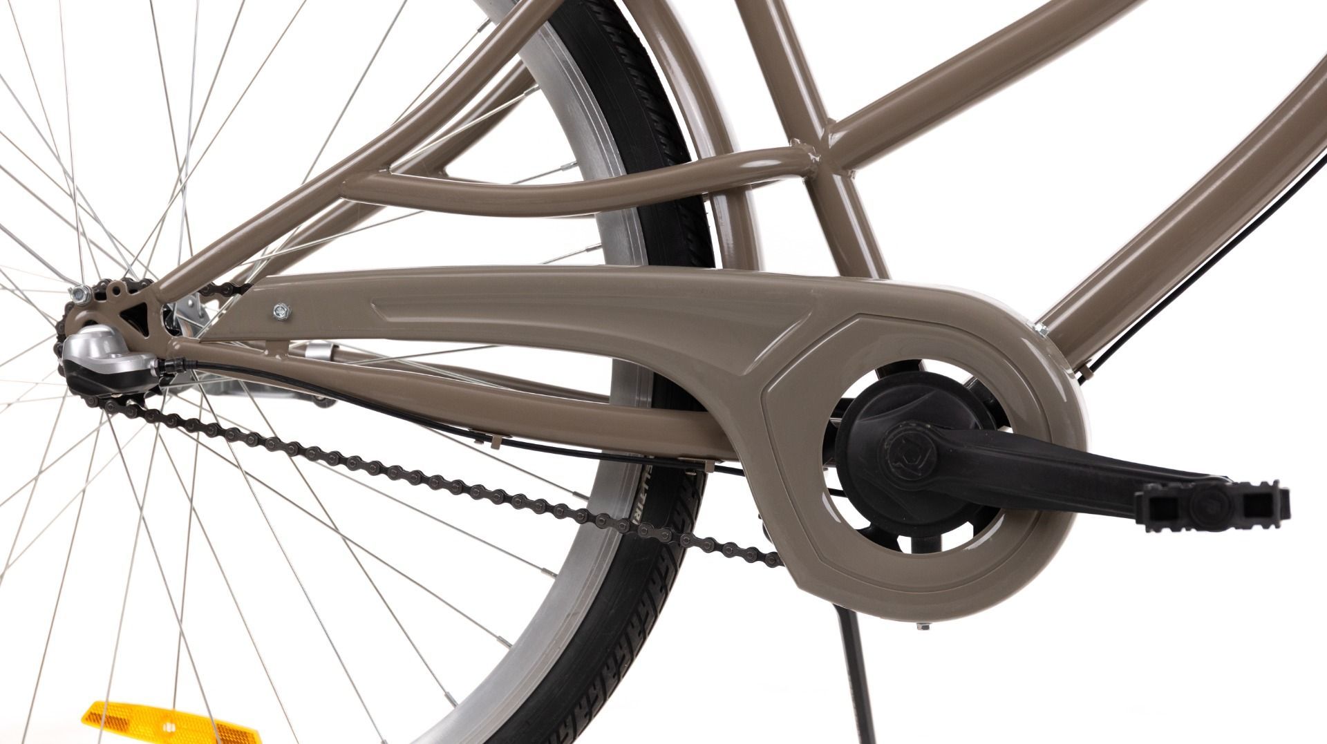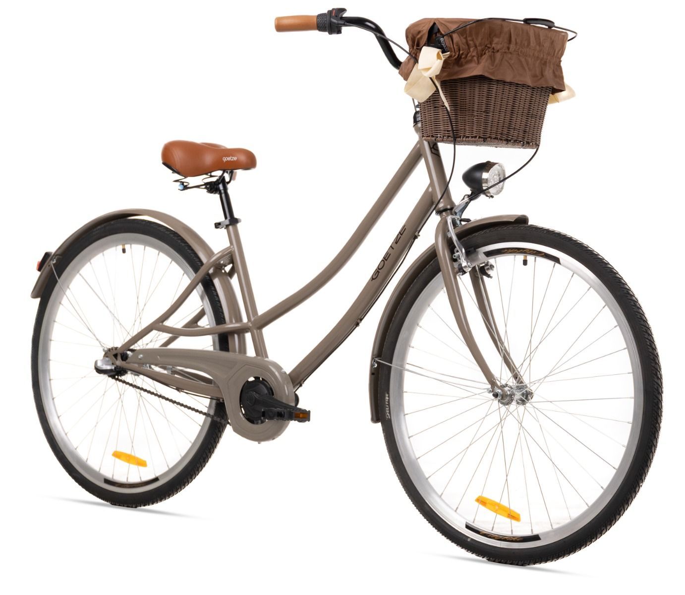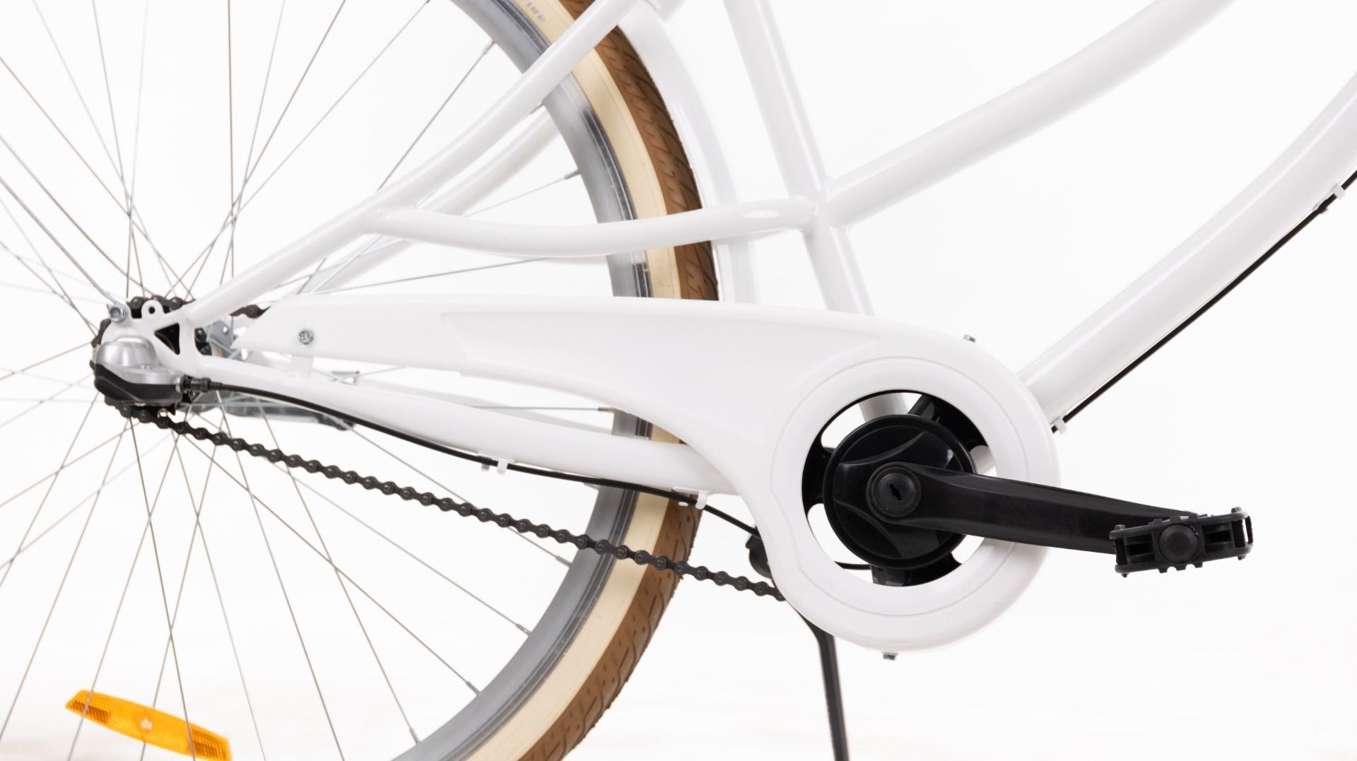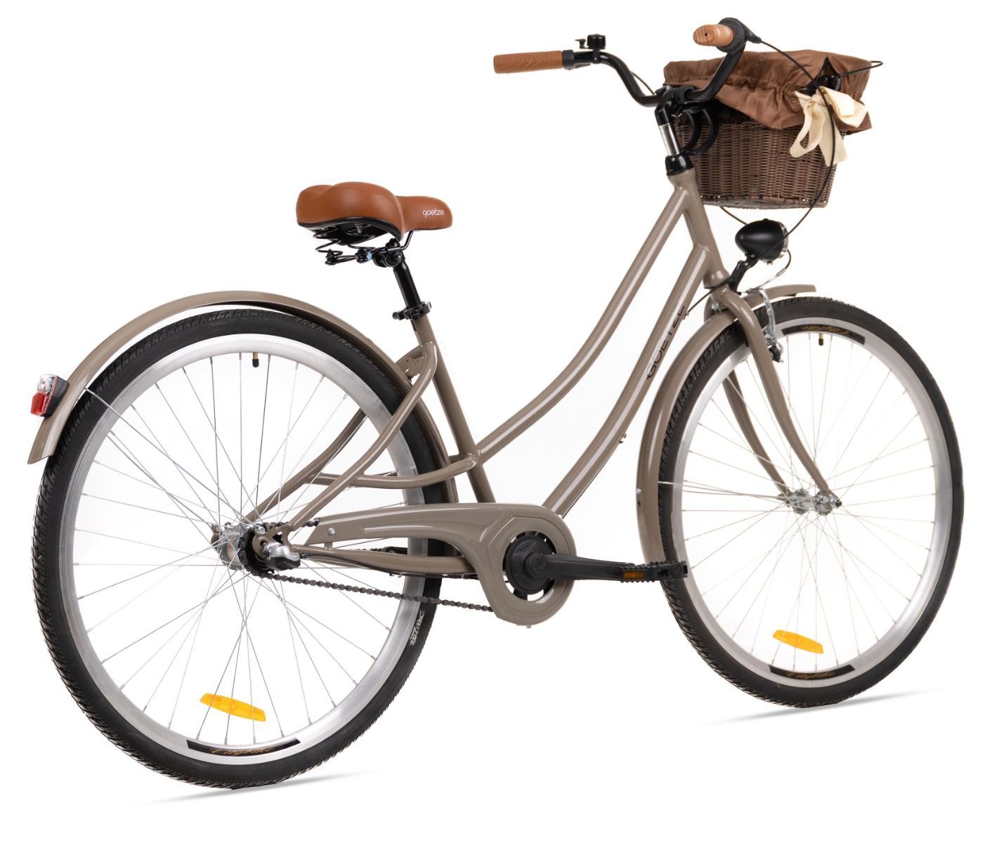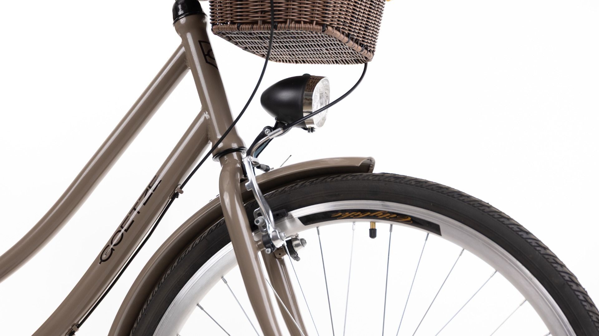 | Wyposażenie | Pełne błotniki, osłona łańcucha, oświetlenie LED na baterie, podpórka, dzwonek, kosz na kierownicę z wkładem |