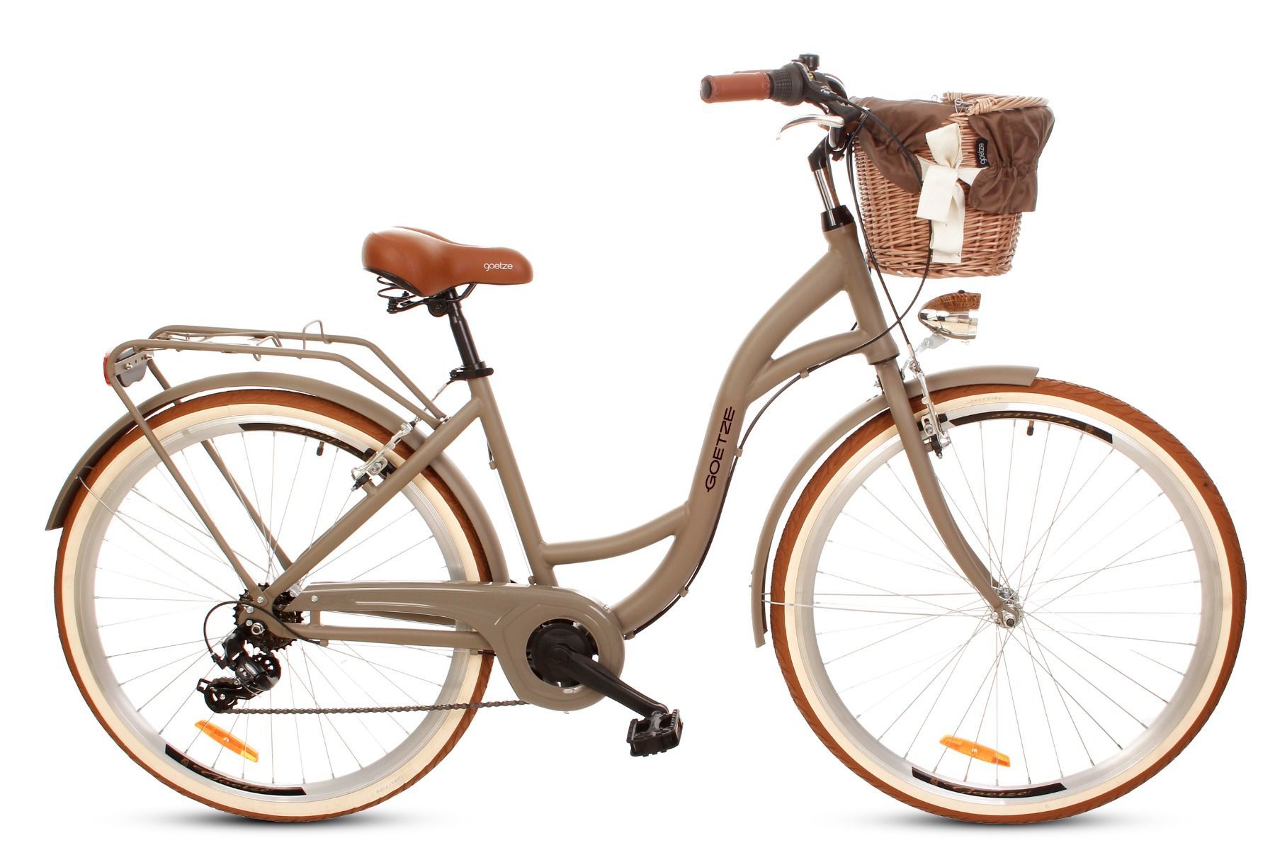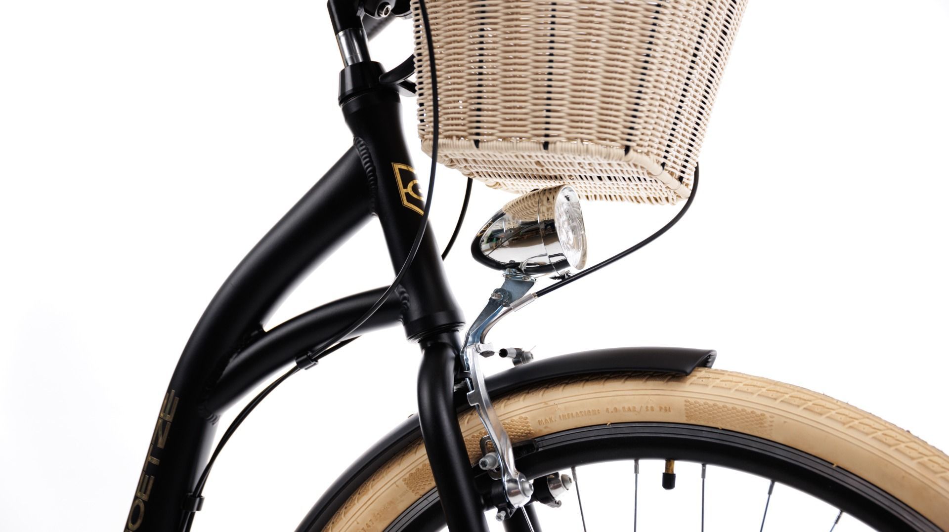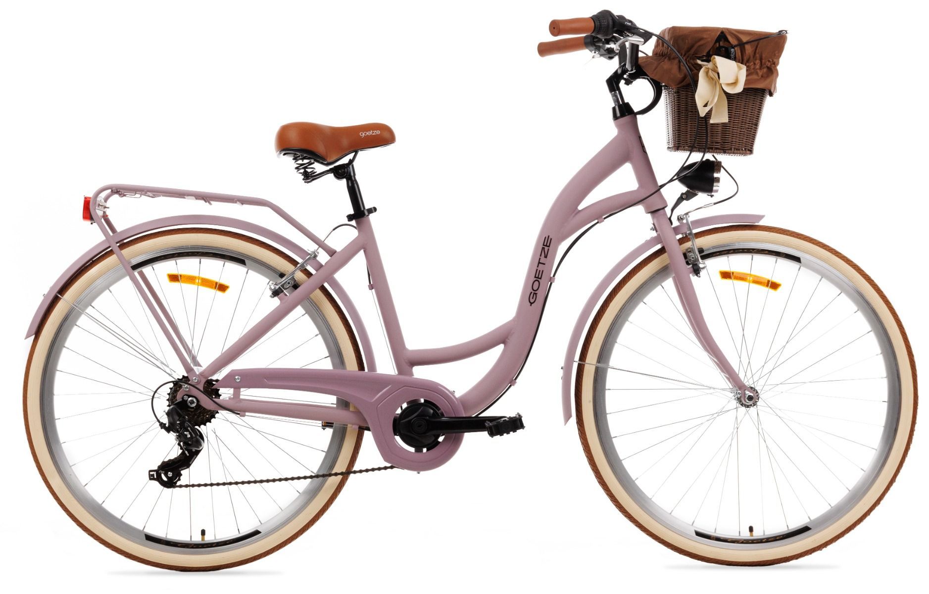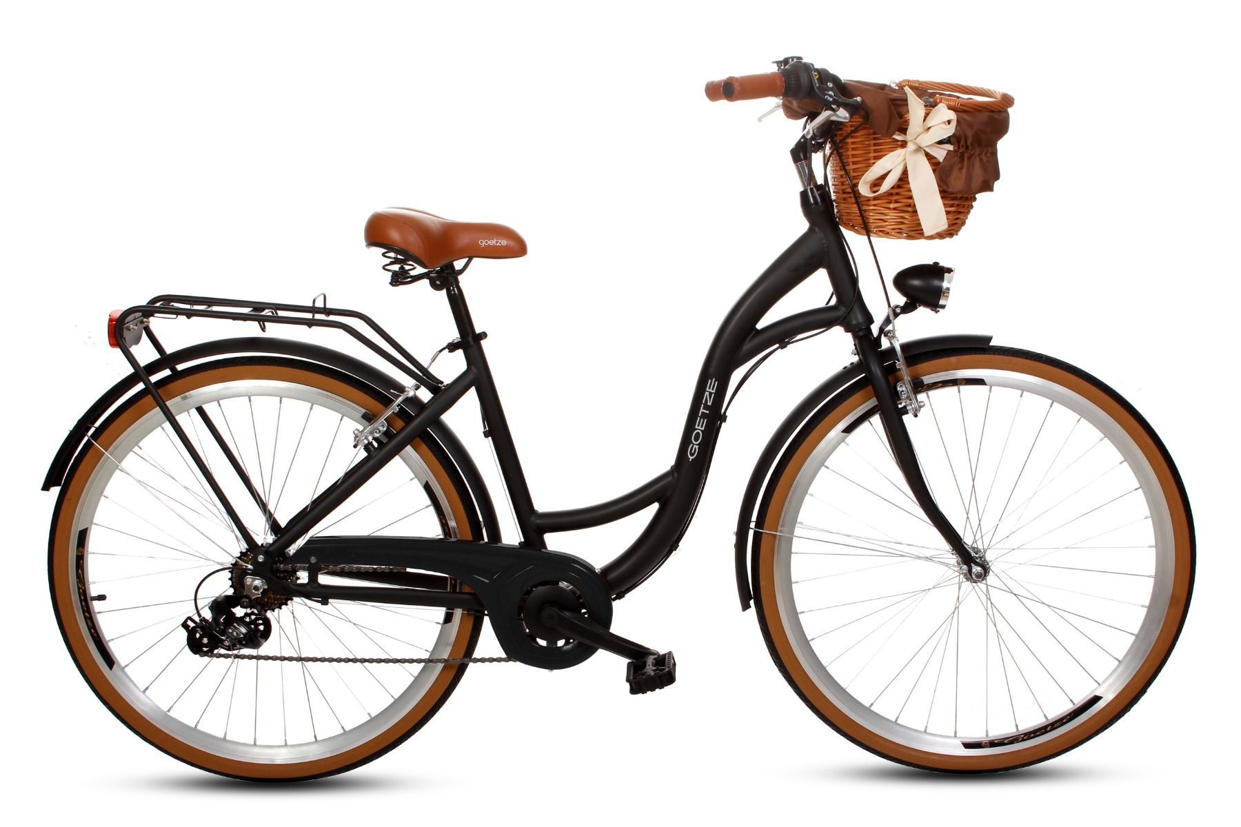 | Wyposażenie standardowe | Kosz na kierownicę z wkładem, wytrzymały bagażnik, błotniki, oświetlenie LED na baterie, składana podpórka, dzwonek. |