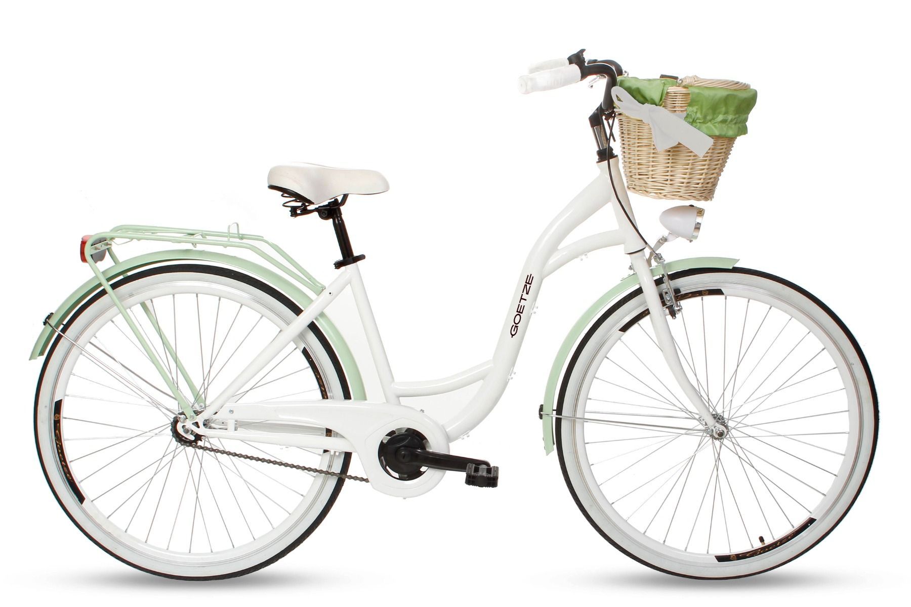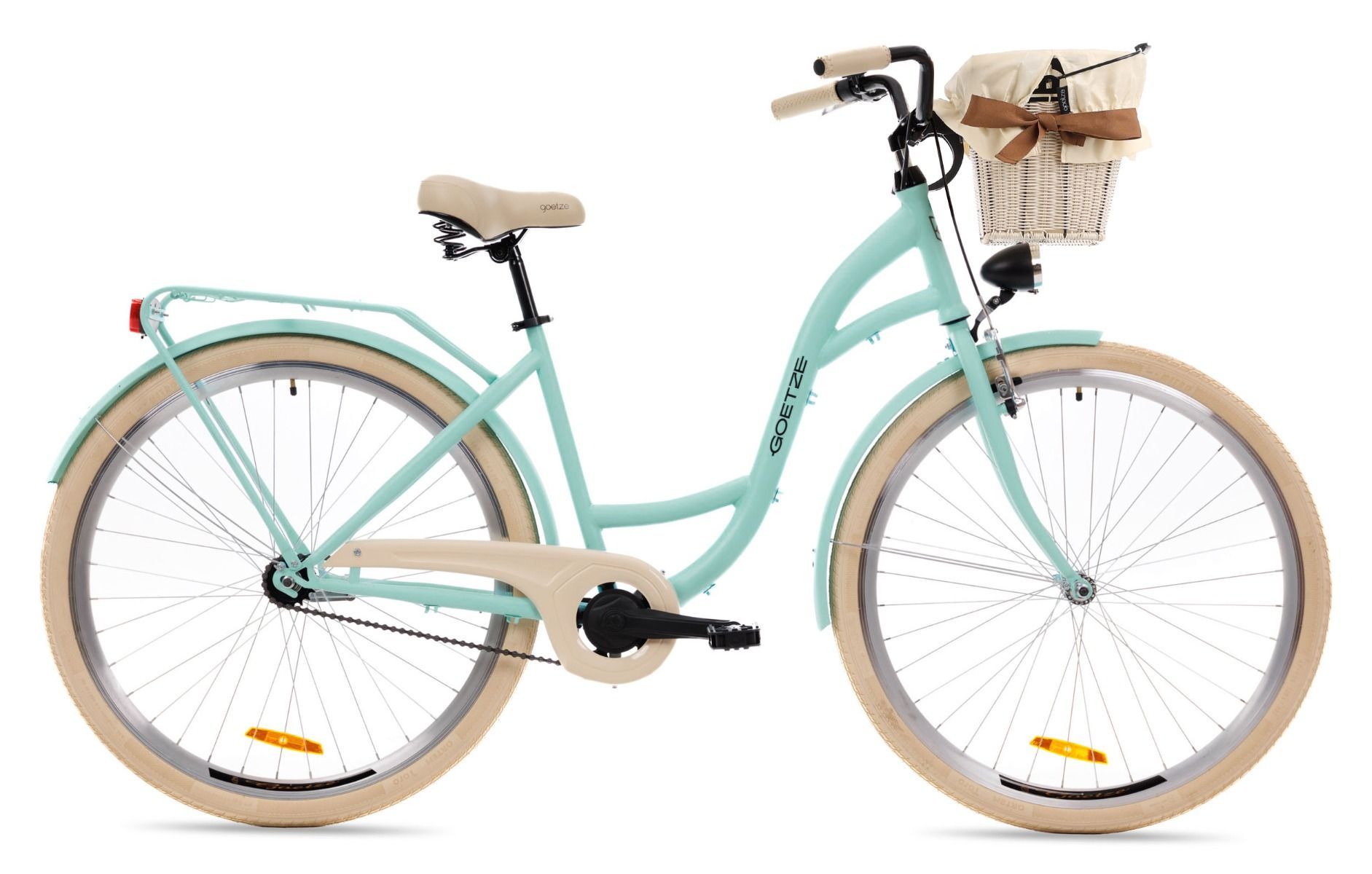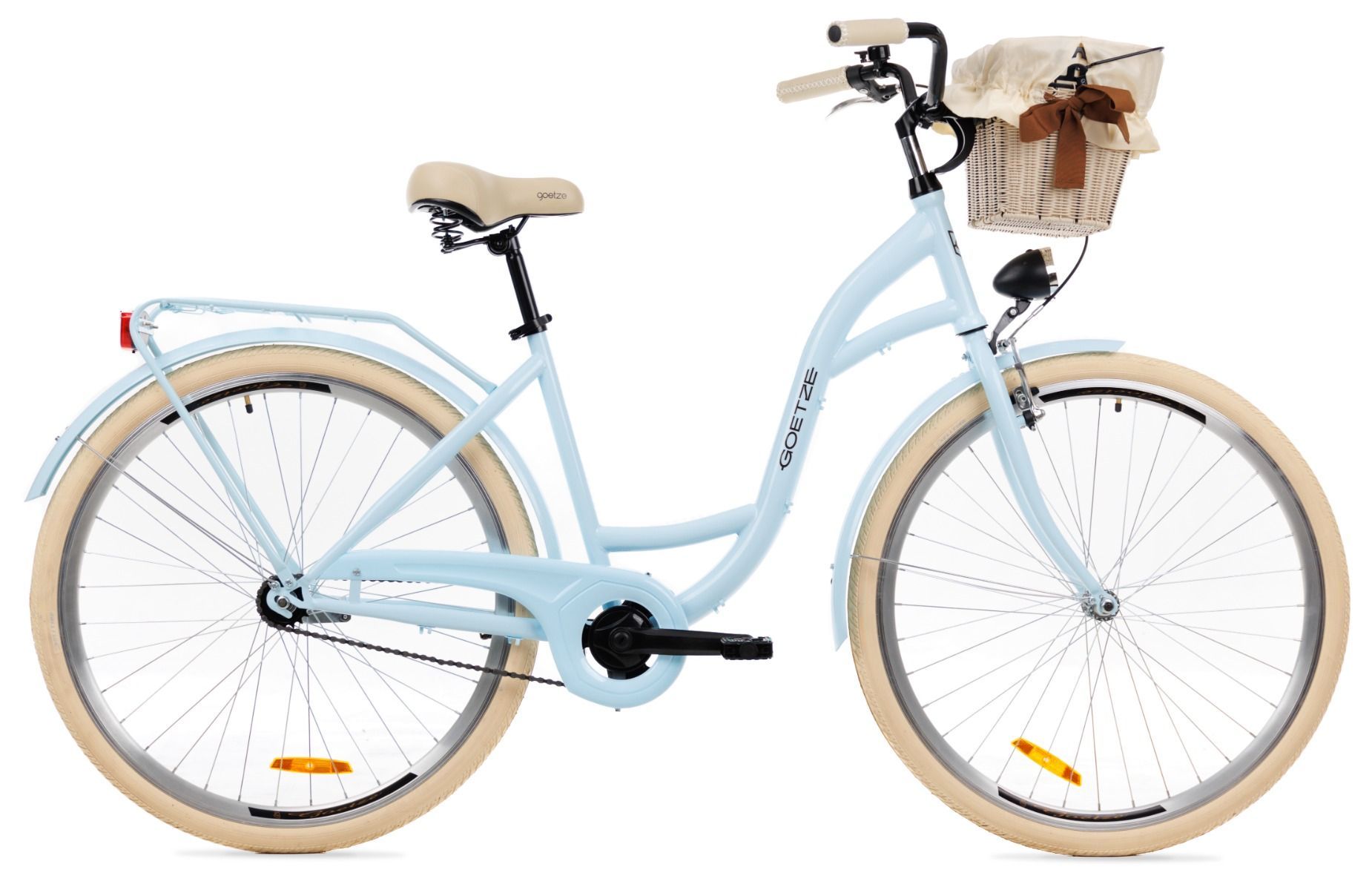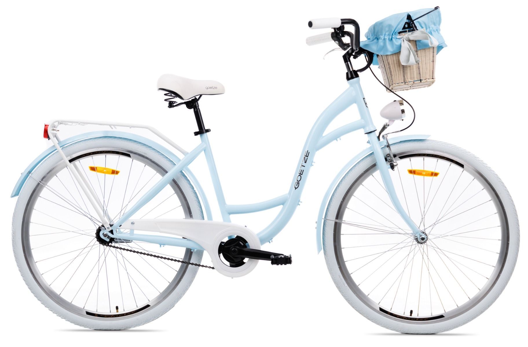 | Wyposażenie | Pełne błotniki, bagażnik, oświetlenie LED (na baterie), podpórka, osłona łańcucha, dzwonek, koszyk na kierownicę z wyściółką |