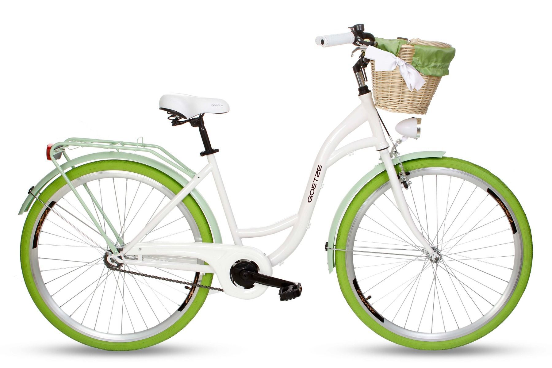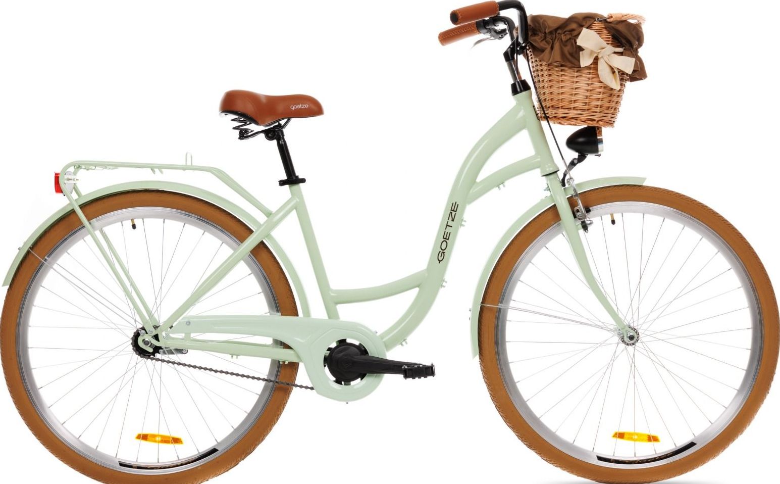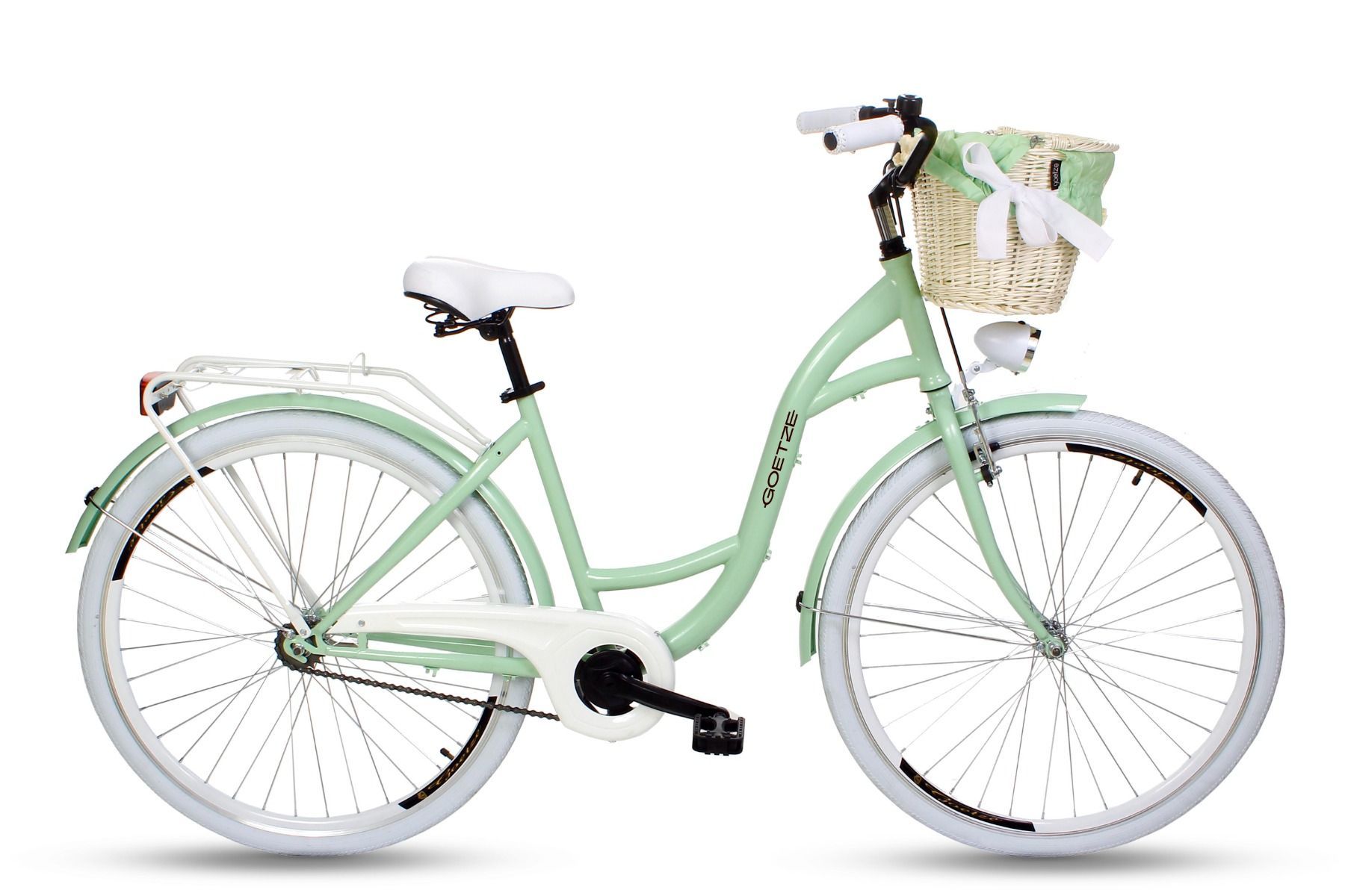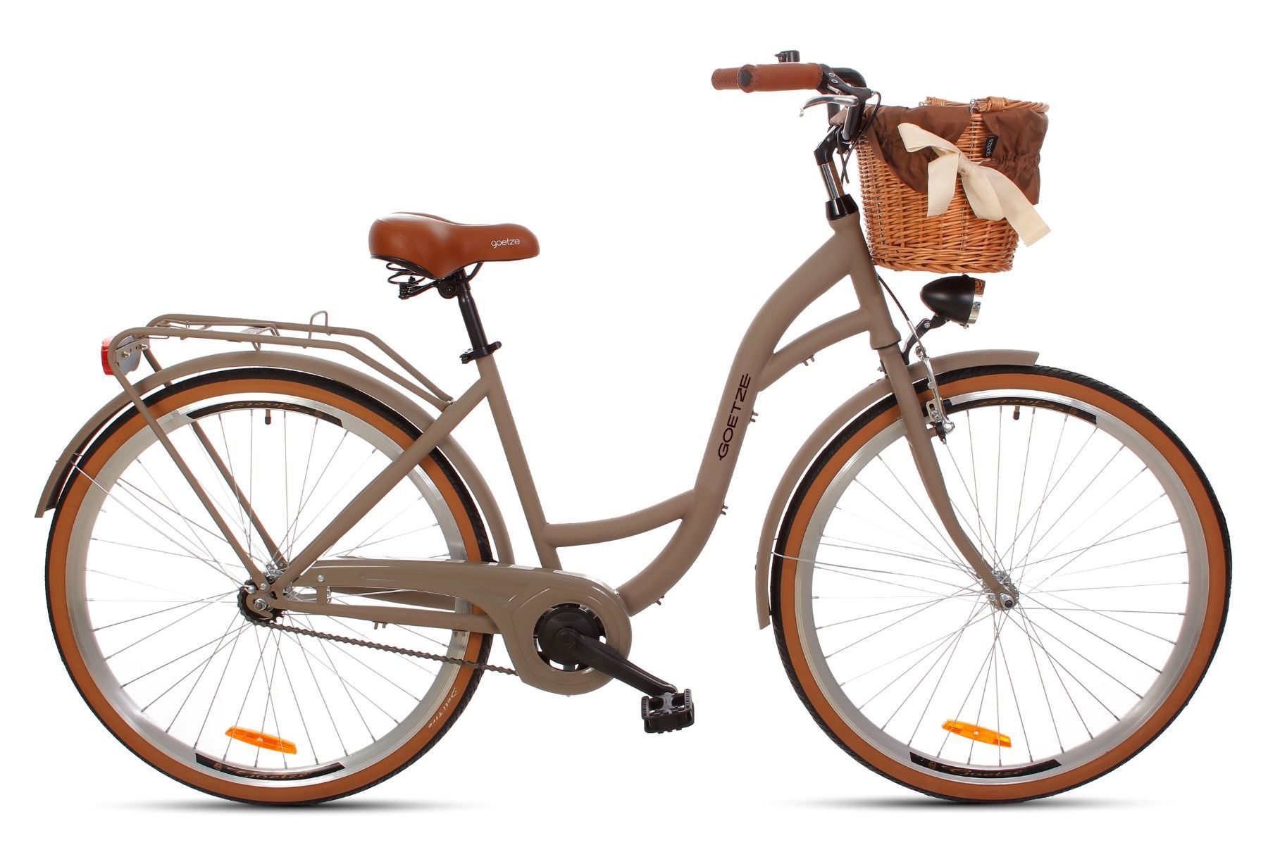 | Wyposażenie | Pełne błotniki, bagażnik, oświetlenie LED (na baterie), podpórka, osłona łańcucha, dzwonek, koszyk na kierownicę z wyściółką |