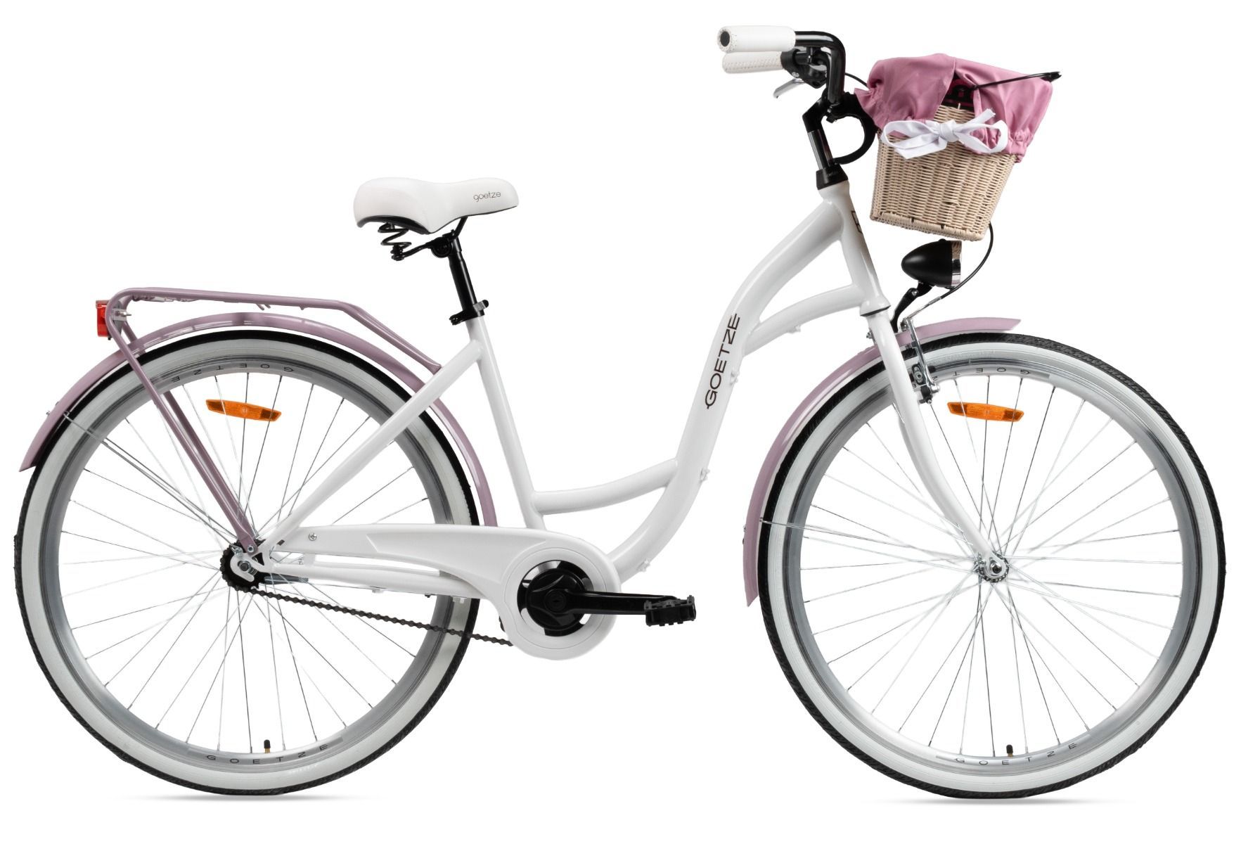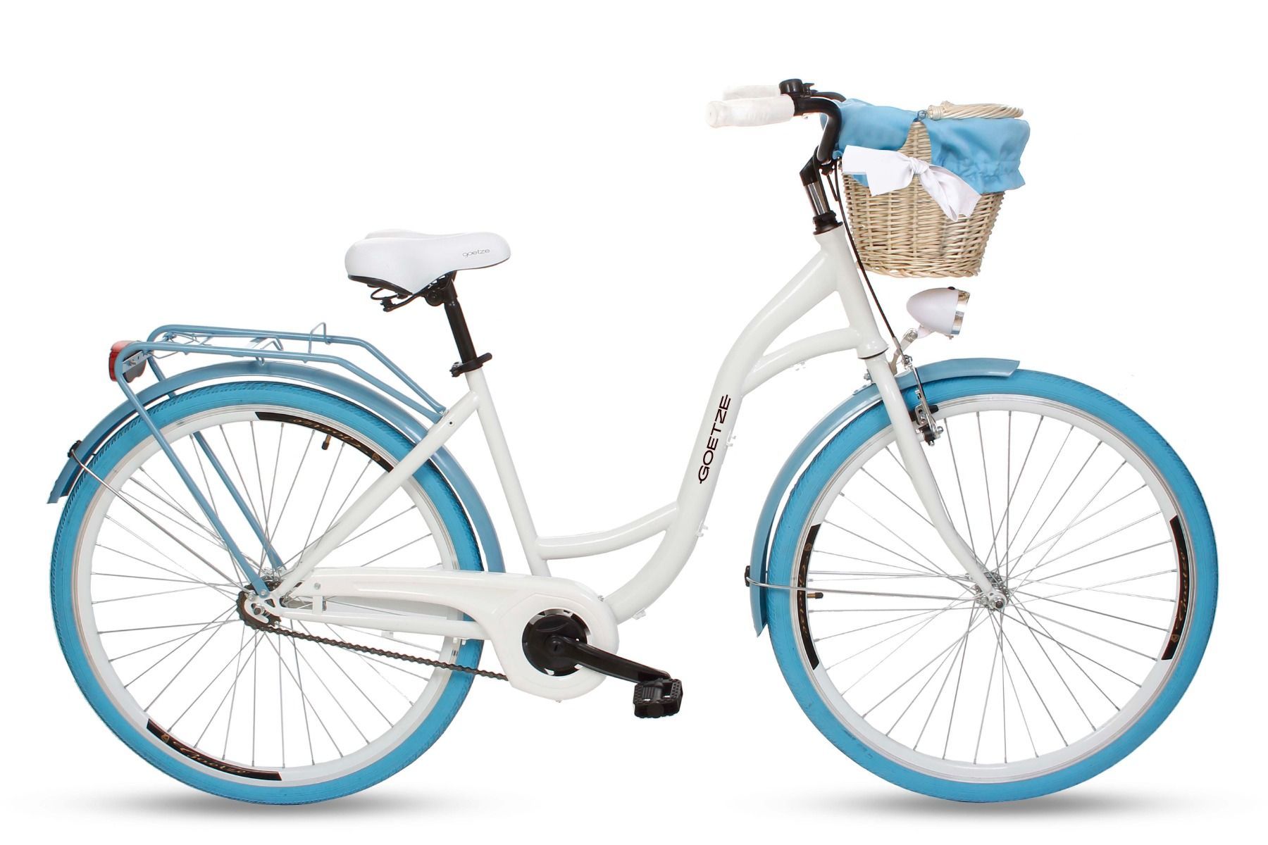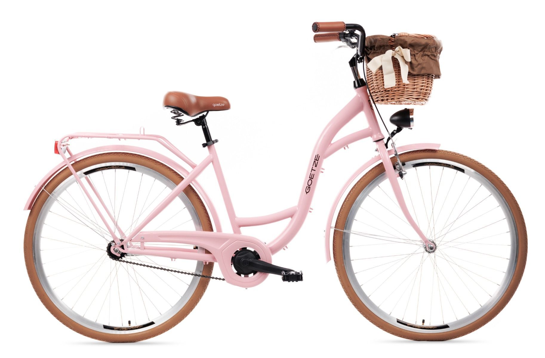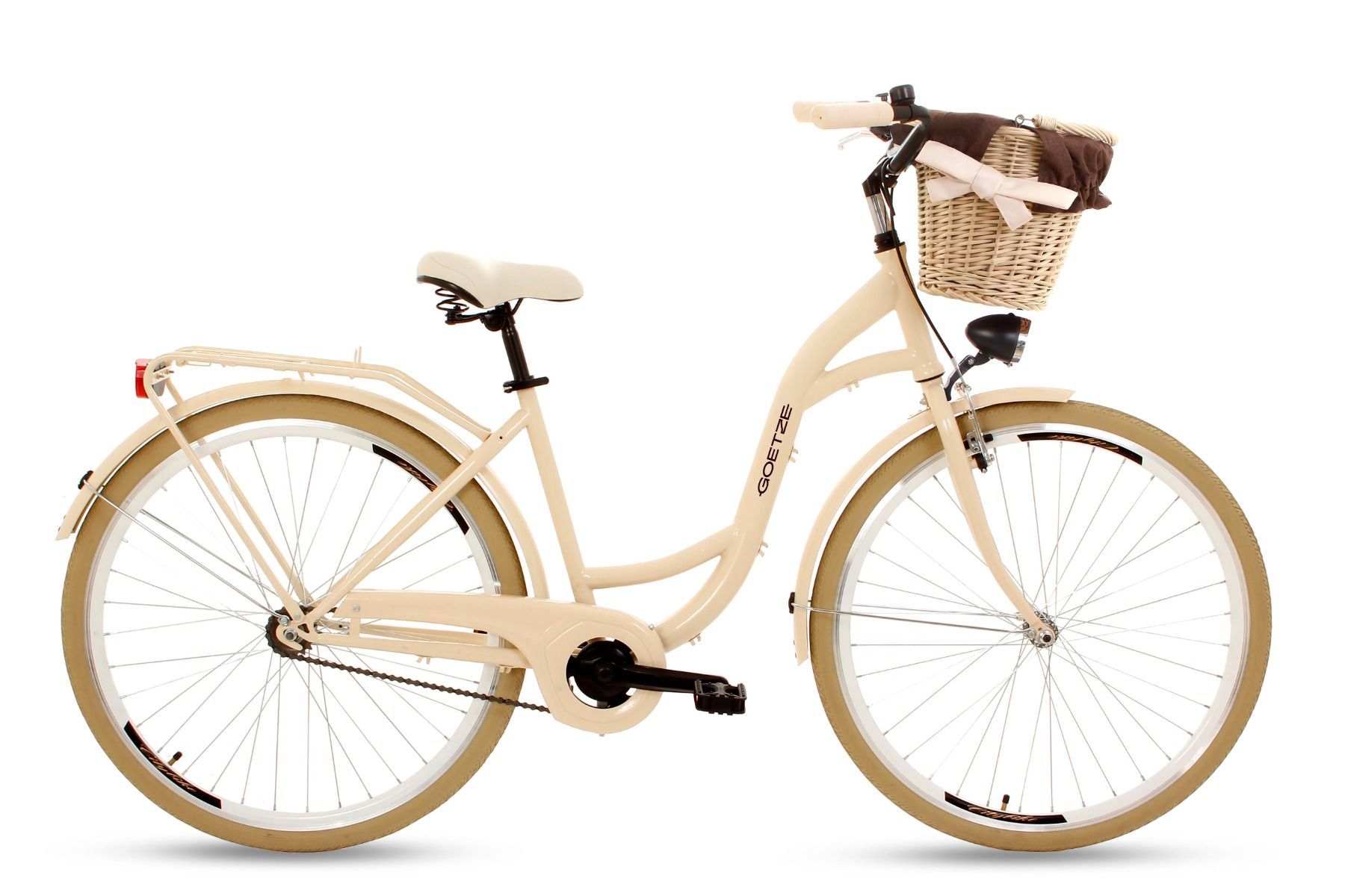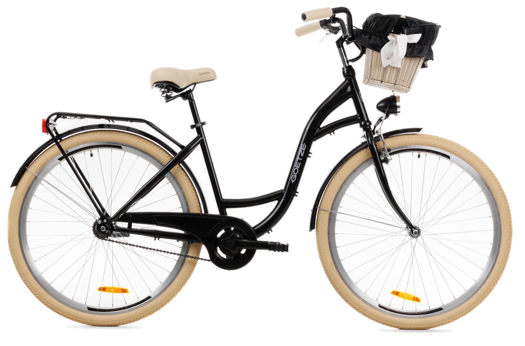 | Wyposażenie | Pełne błotniki, bagażnik, oświetlenie LED (na baterie), podpórka, osłona łańcucha, dzwonek, koszyk na kierownicę z wyściółką |