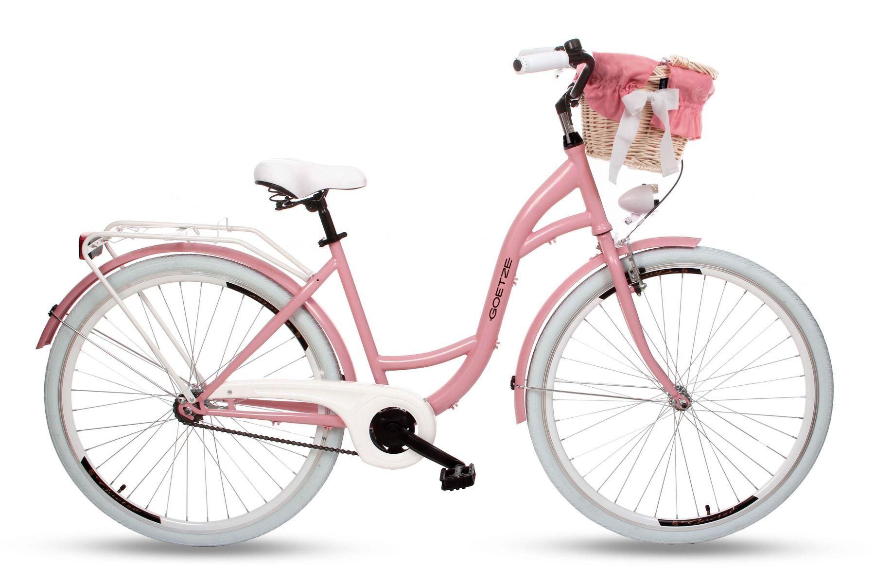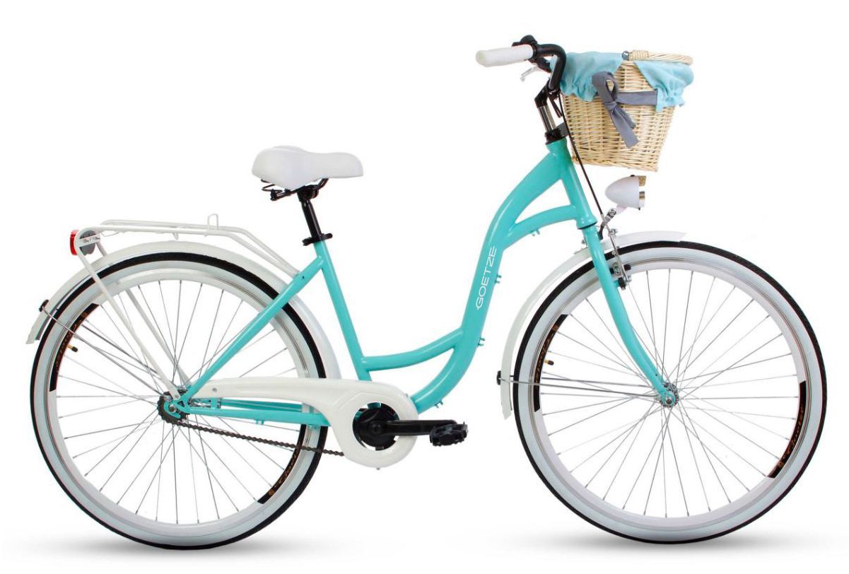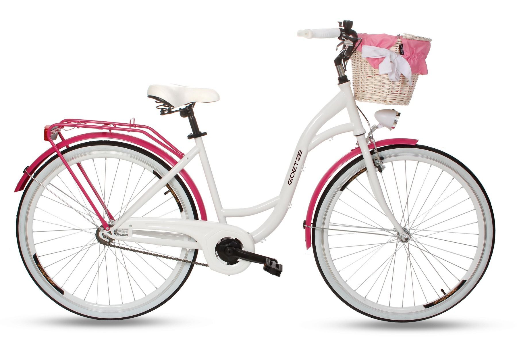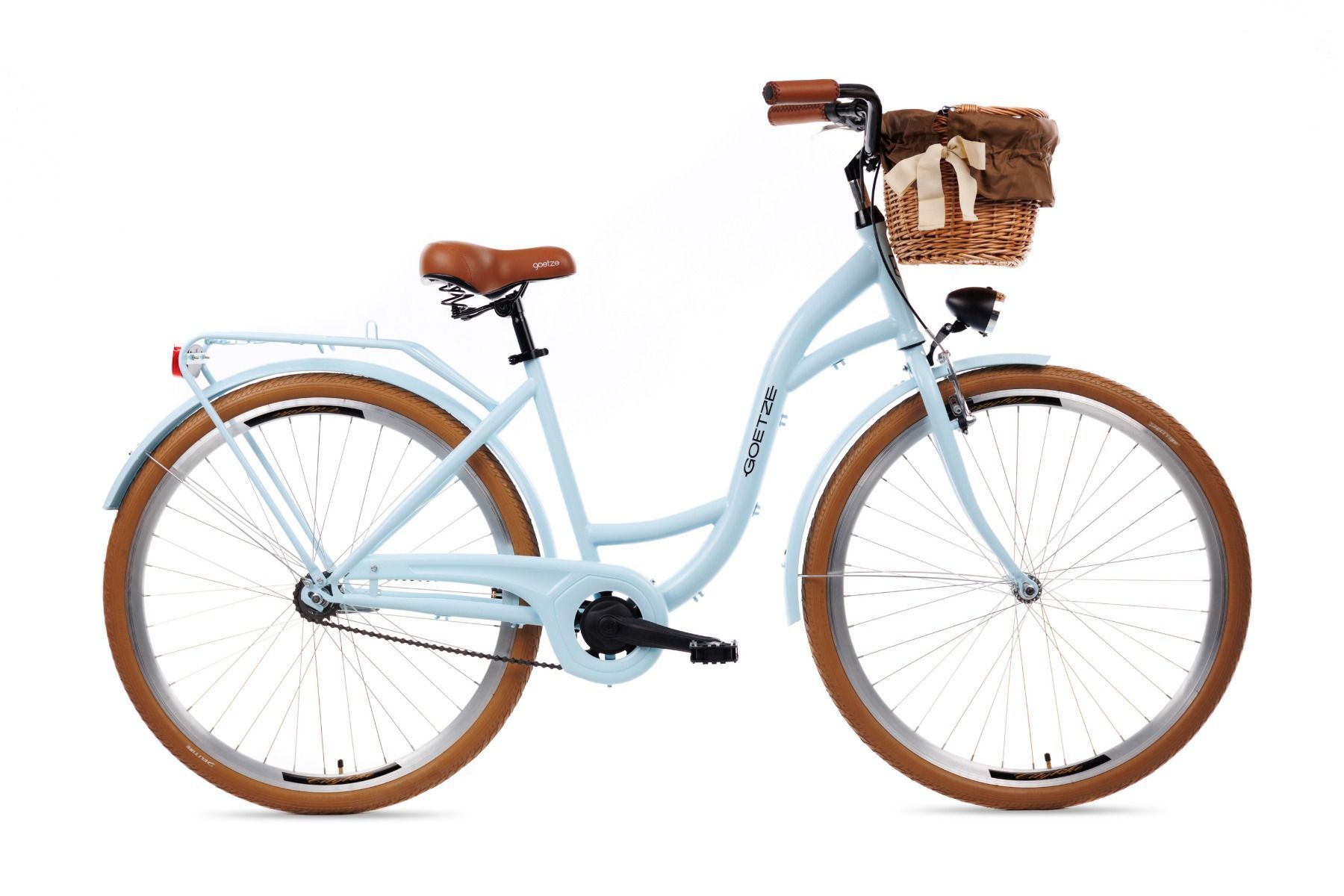 | Wyposażenie | Pełne błotniki, bagażnik, oświetlenie LED (na baterie), podpórka, osłona łańcucha, dzwonek, koszyk na kierownicę z wyściółką |