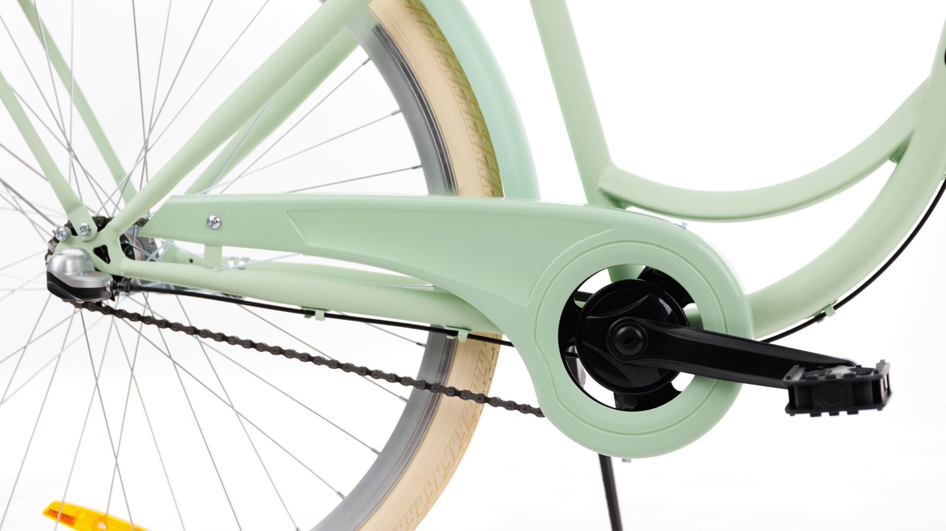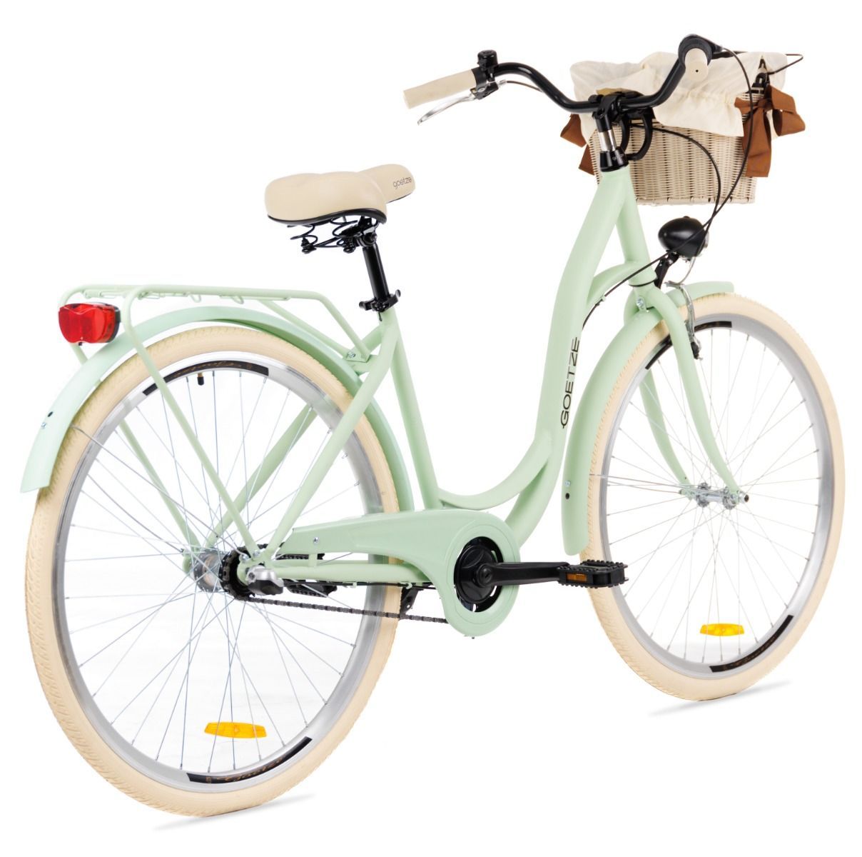 | Wyposażenie | Błotniki, bagażnik, oświetlenie LED na baterie, podpórka, dzwonek, osłona łańcucha, kosz na kierownicę z wkładem |