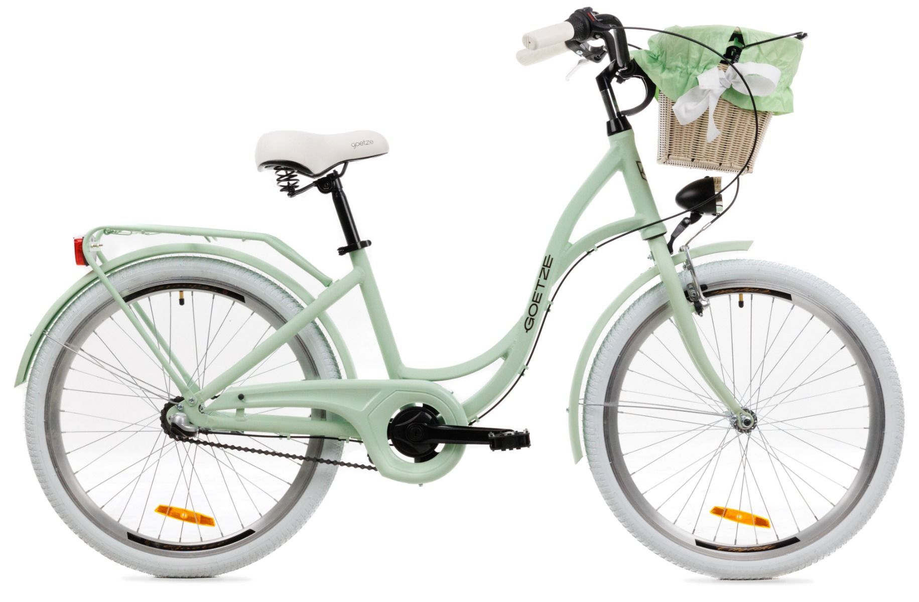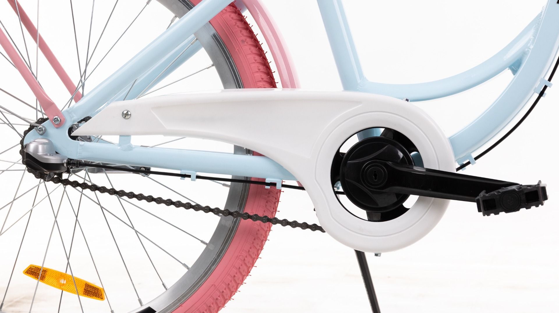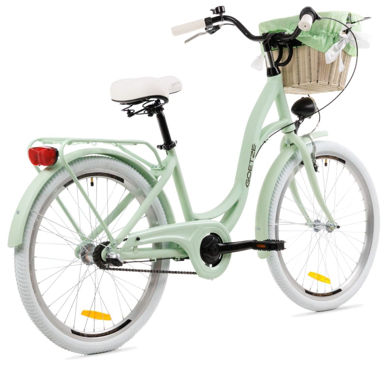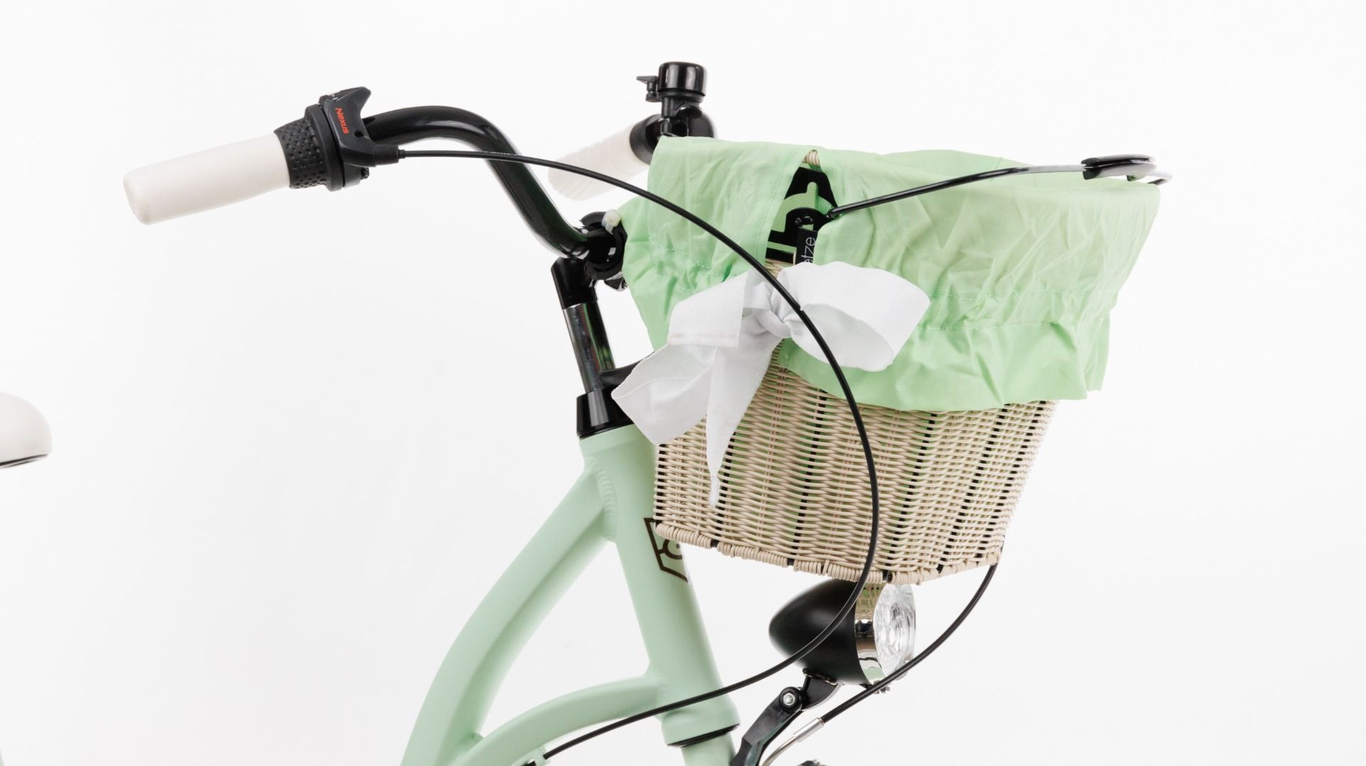 | Wyposażenie | Pełne błotniki, bagażnik, osłona łańcucha, oświetlenie LED na baterie, podpórka, dzwonek, kosz na kierownicę z wkładem |