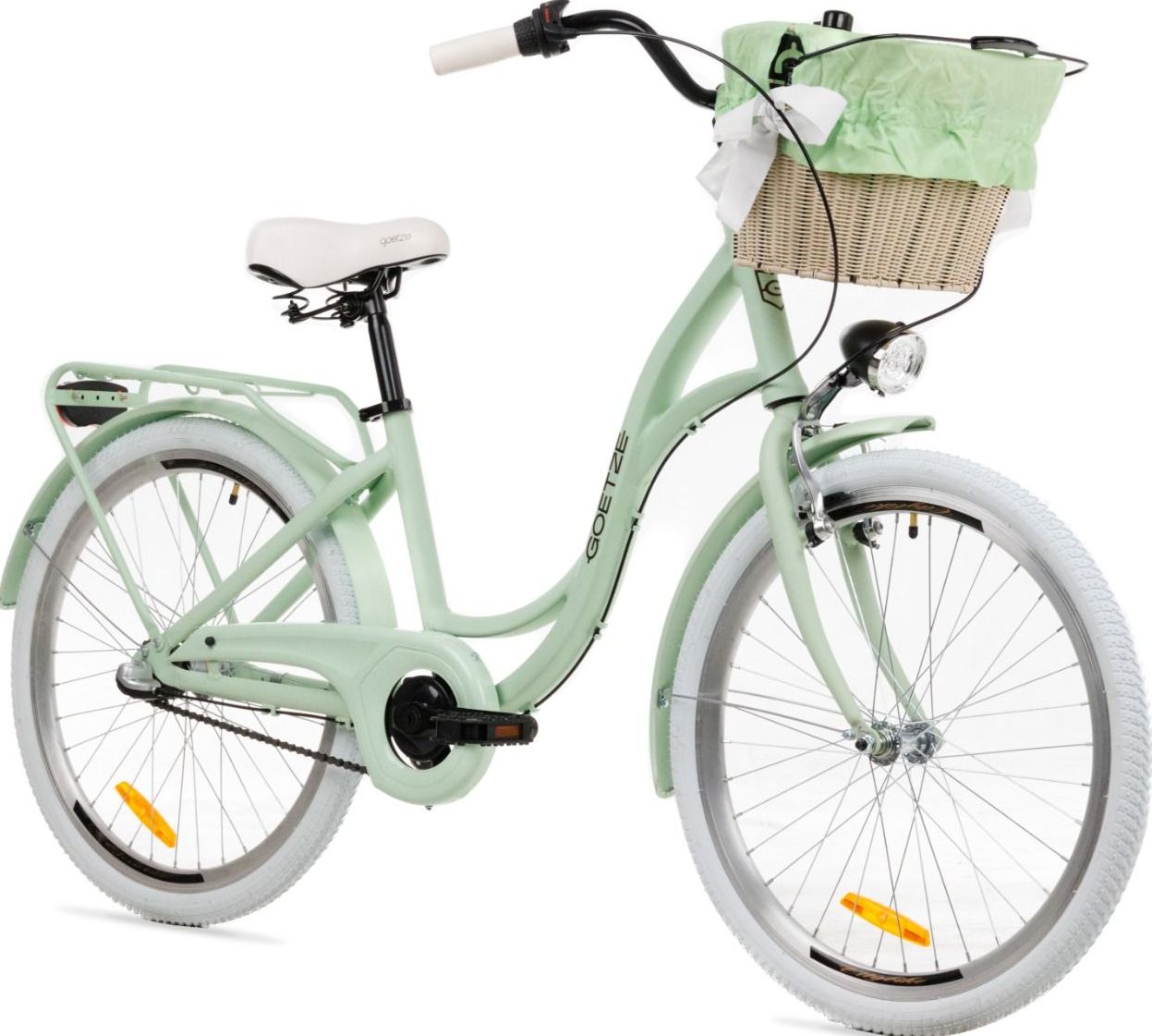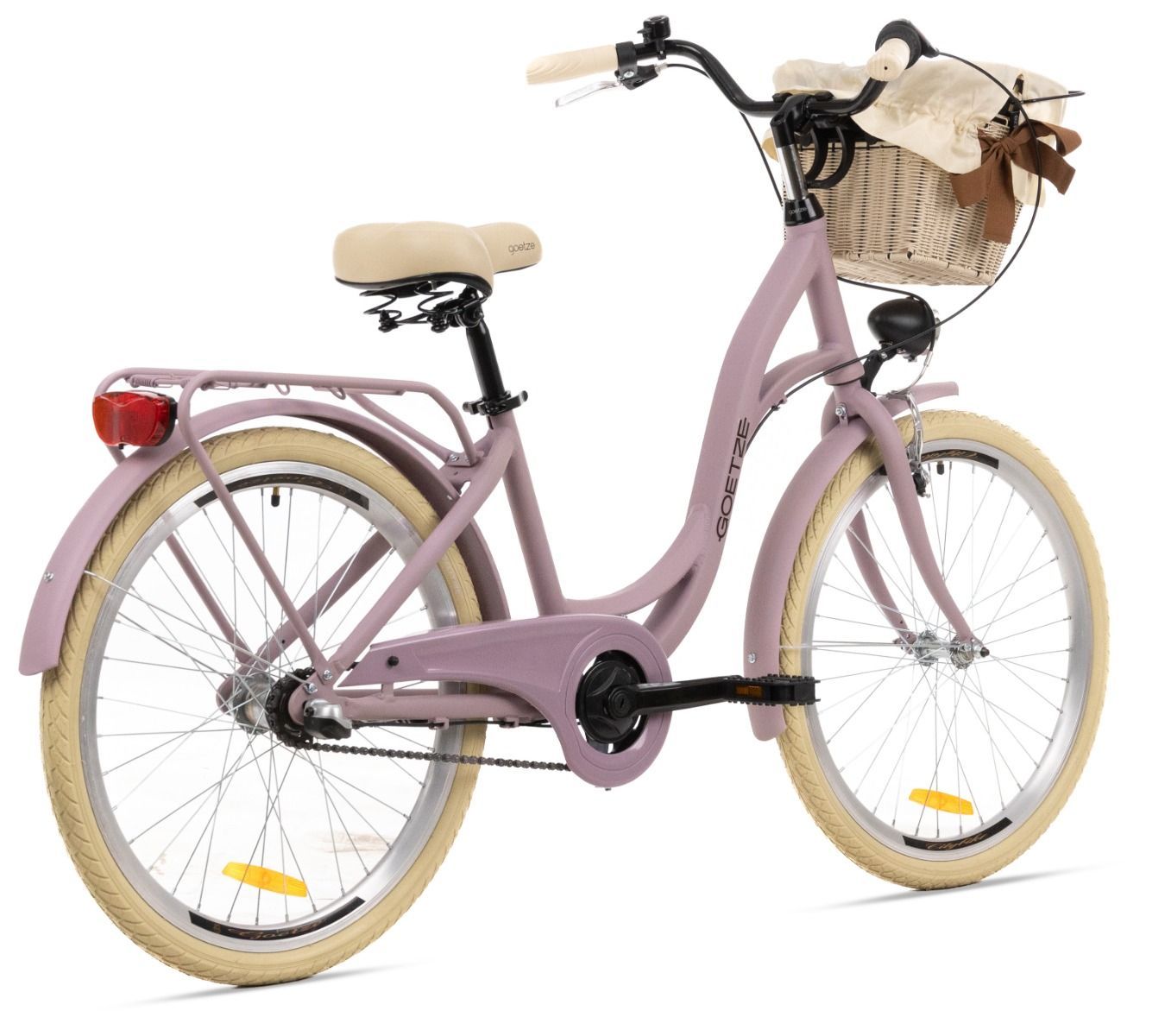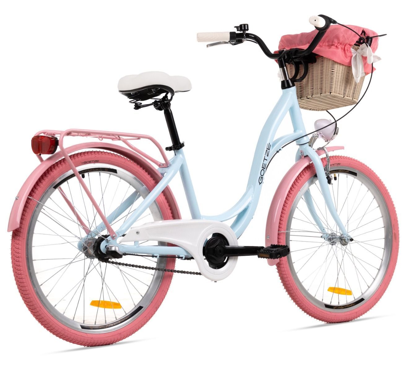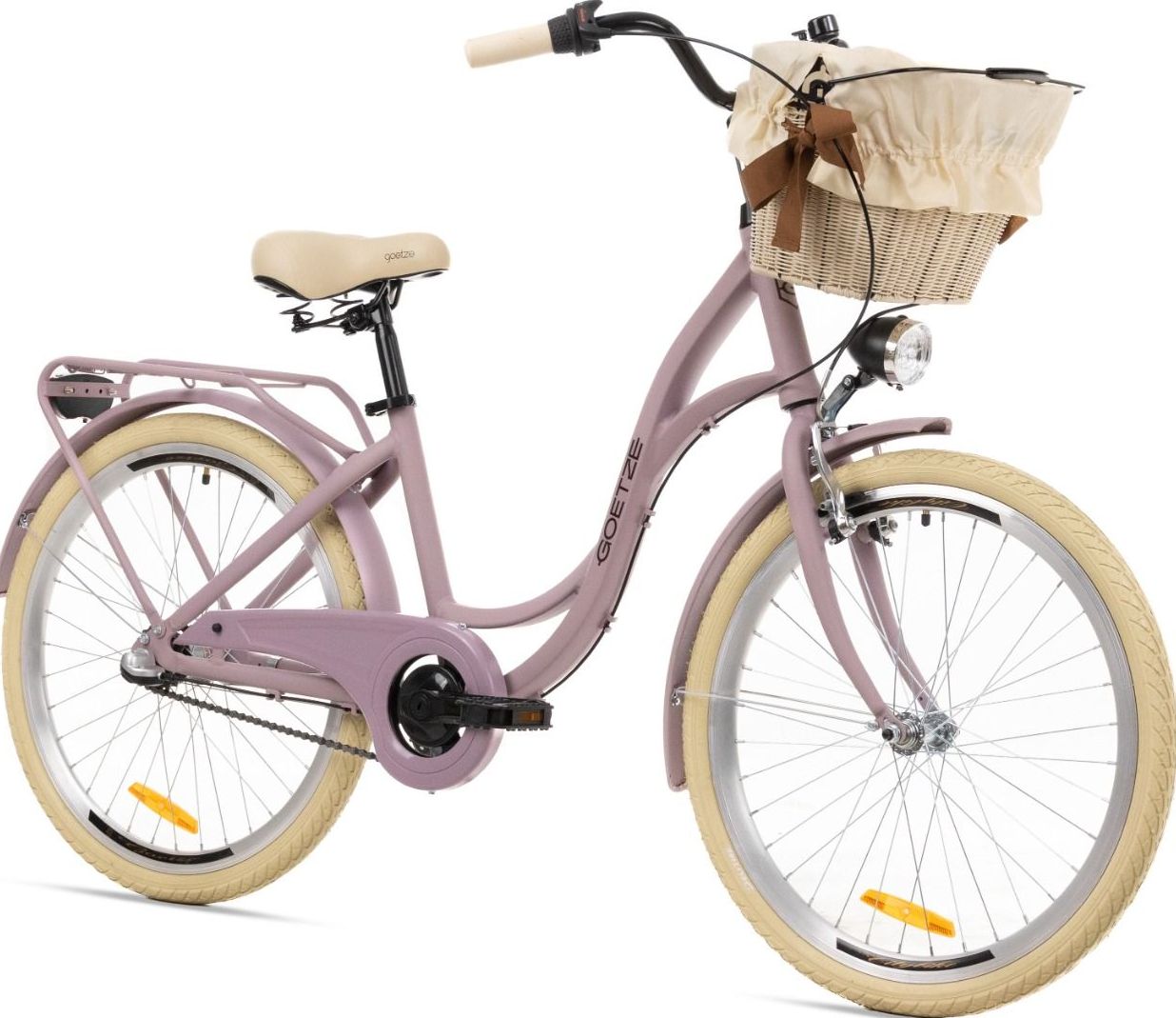 | Wyposażenie | Pełne błotniki, bagażnik, osłona łańcucha, oświetlenie LED na baterie, podpórka, dzwonek, kosz na kierownicę z wkładem |