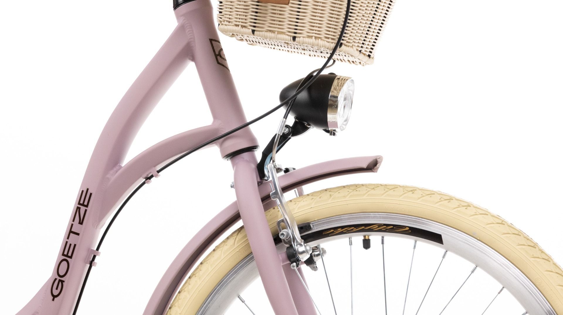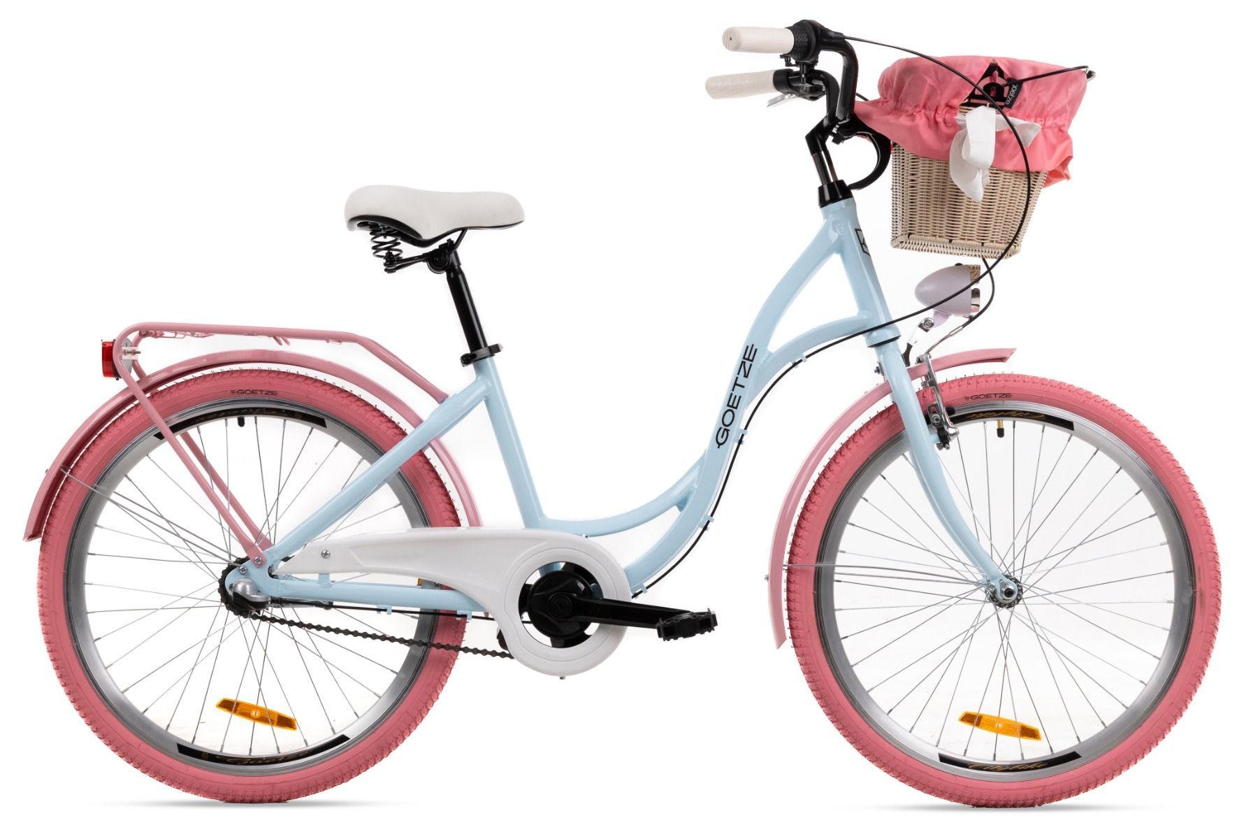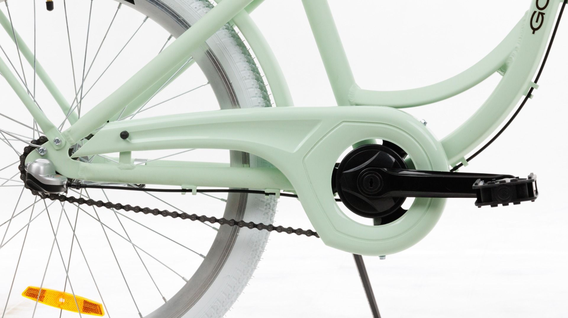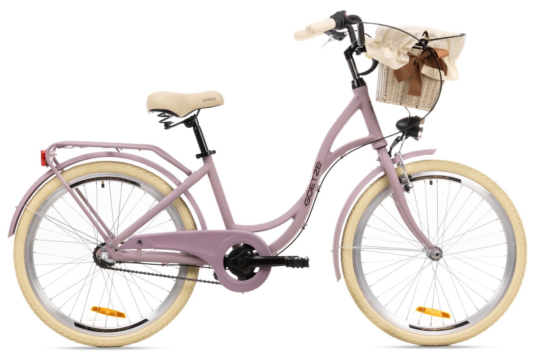 | Wyposażenie | Pełne błotniki, bagażnik, osłona łańcucha, oświetlenie LED na baterie, podpórka, dzwonek, kosz na kierownicę z wkładem |