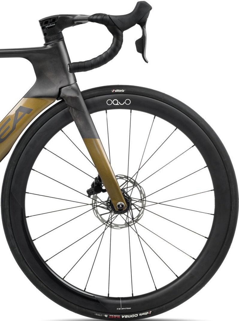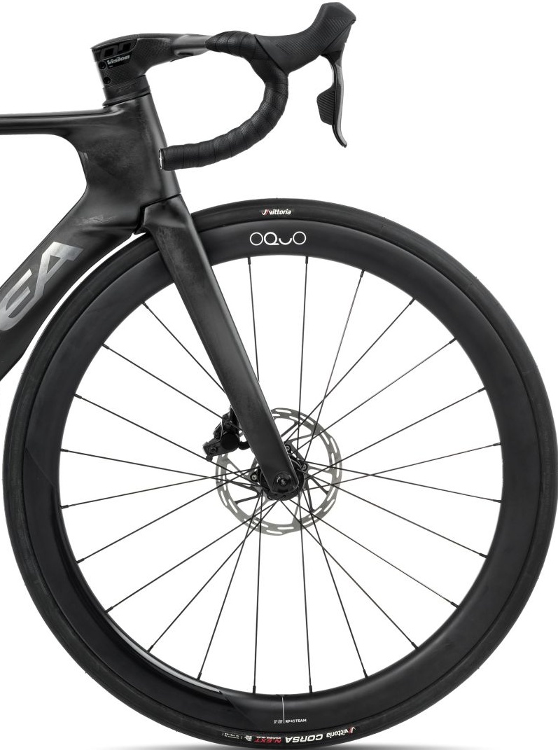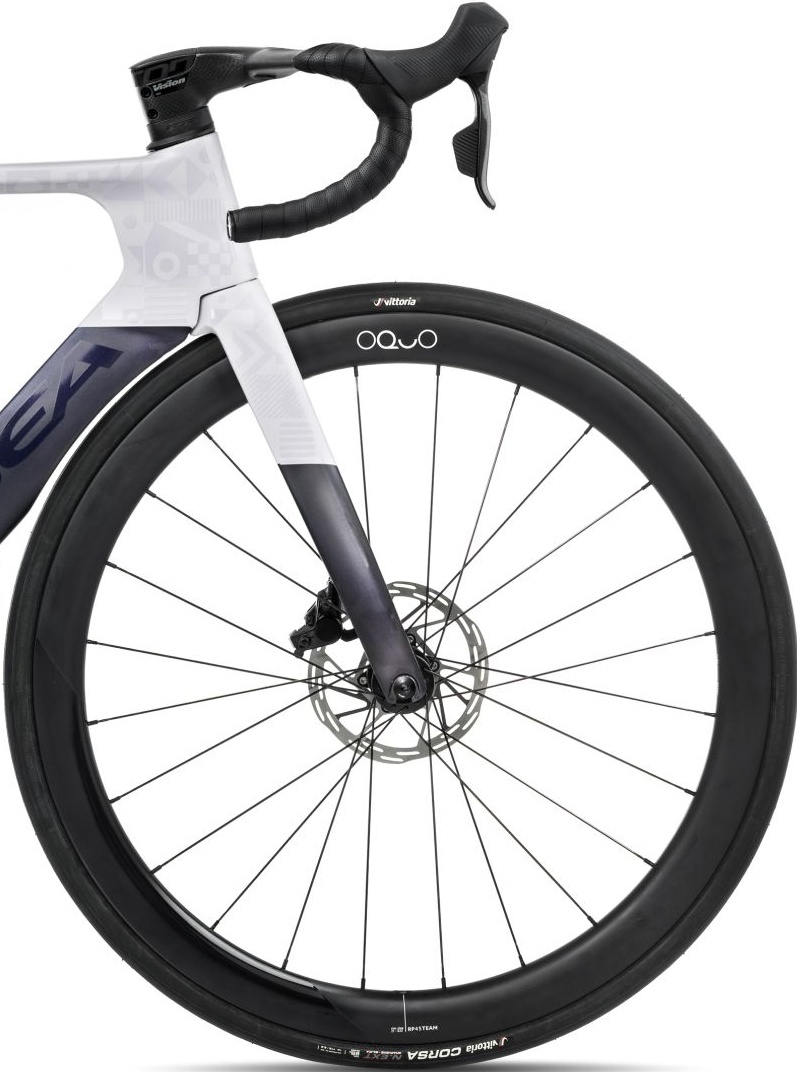 Orbea Orca Aero OMX ICR, karbonowy widelec oraz rura sterowa, 1-1/8" - 1,5" kompatybilny z ramą z poszerzaną główką (tappered), Sztywna oś 12x100mm, gwint M12x2 P1, Mocowanie koła kompatybilne z Speed Release |
