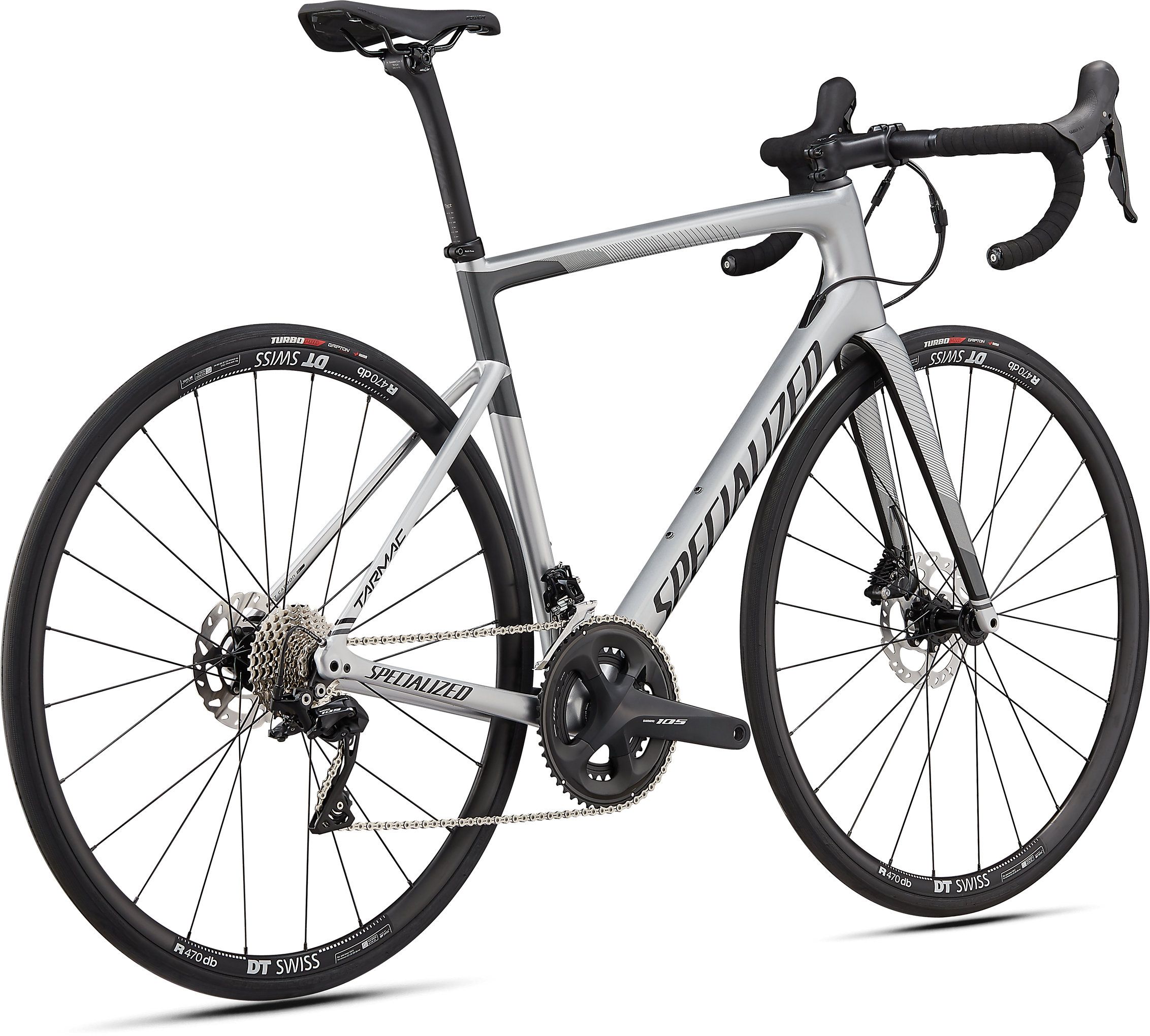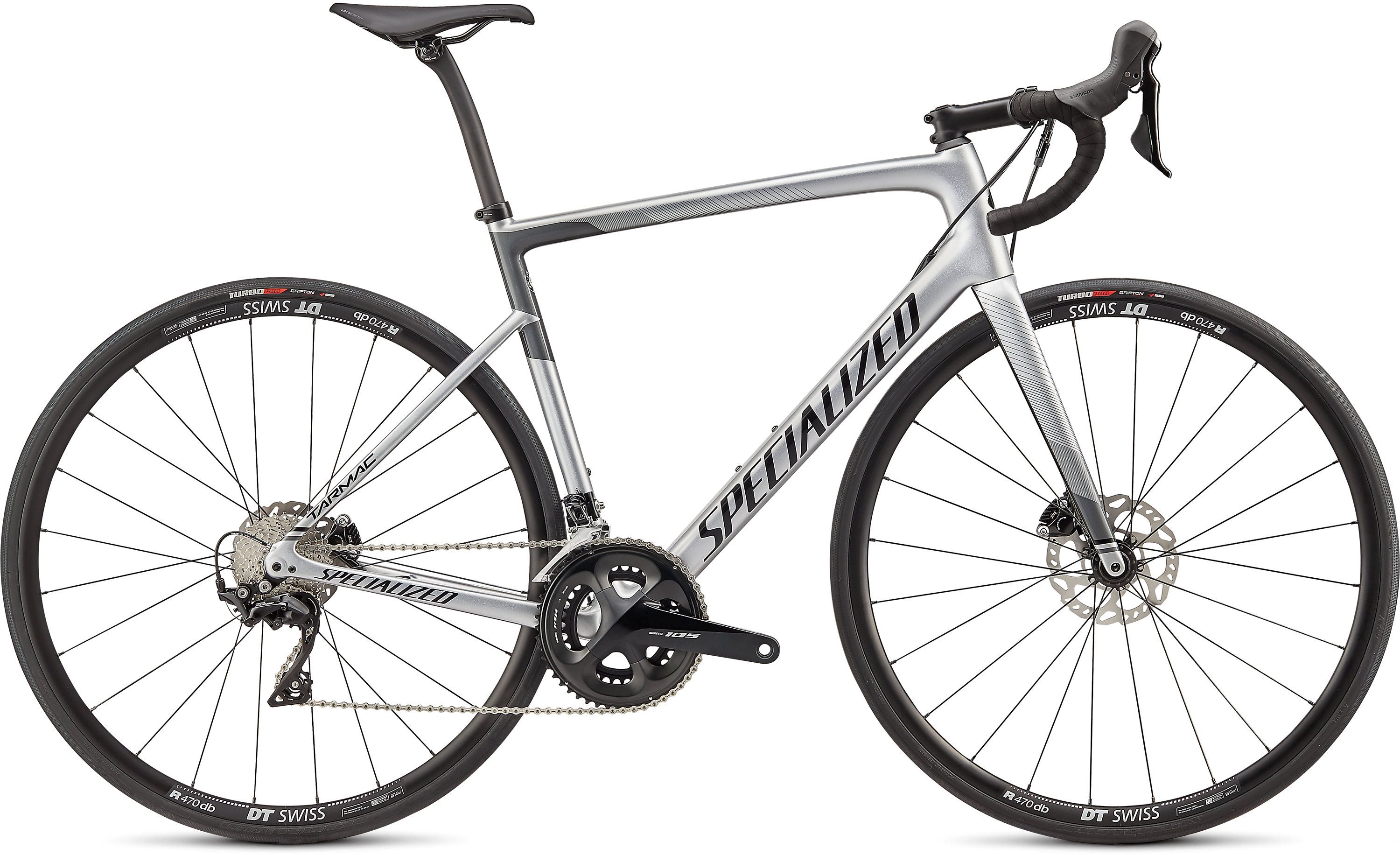 Pracując nad nowym modelem Tarmac Disc chcieliśmy, by był szybki - szybki absolutnie wszędzie! Szybki na długich podjazdach, na płaskich, wietrznych odcinkach, na każdym z etapów TdF, w wyścigach ulicznych - by był najbardziej kompletnym rowerem szosowym. Tylko jak to osiągnąć? Zaczęliśmy od ramy Rider-First Engineered™, gwarantującej optymalne właściwości jezdne w każdym rozmiarze i aerodynamikę pozwalającą zaoszczędzić 30 sekund na dystansie 40 kilometrów w porównaniu z Tarmacem SL5. No a potem... odchudziliśmy ją o 20%. Tak powstał najlżejszy i najszybszy rower z najlepszą możliwą sterownością. Prezentowana wersja Tarmaca otrzymała niezawodny osprzęt, jak mechaniczne przerzutki Shimano 105, solidne hydrauliczne hamulce tarczowe, wytrzymałe koła DT R470 Disc i sprawdzone siodełko Power.