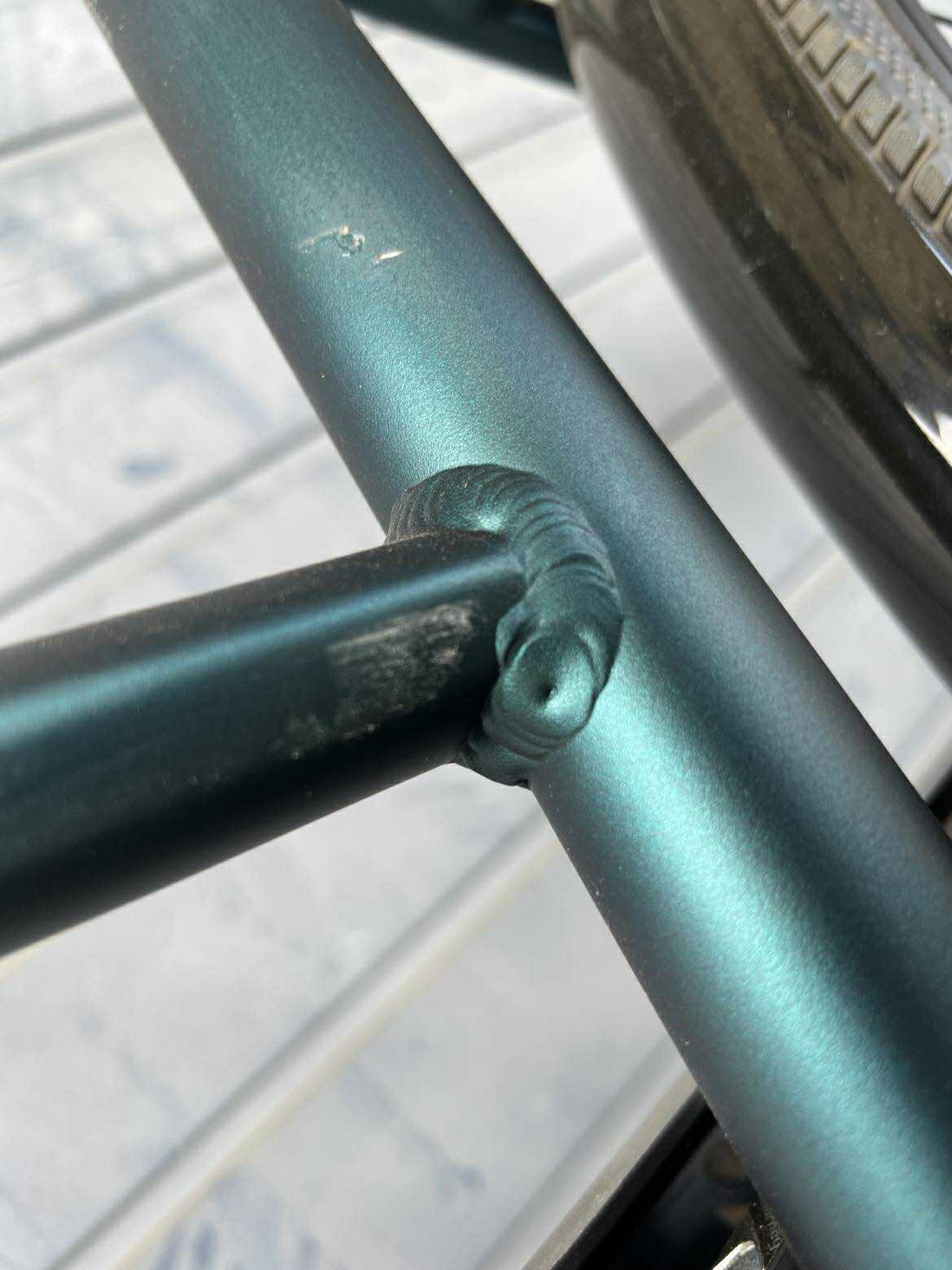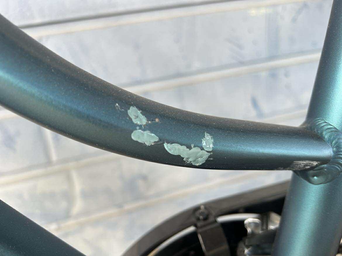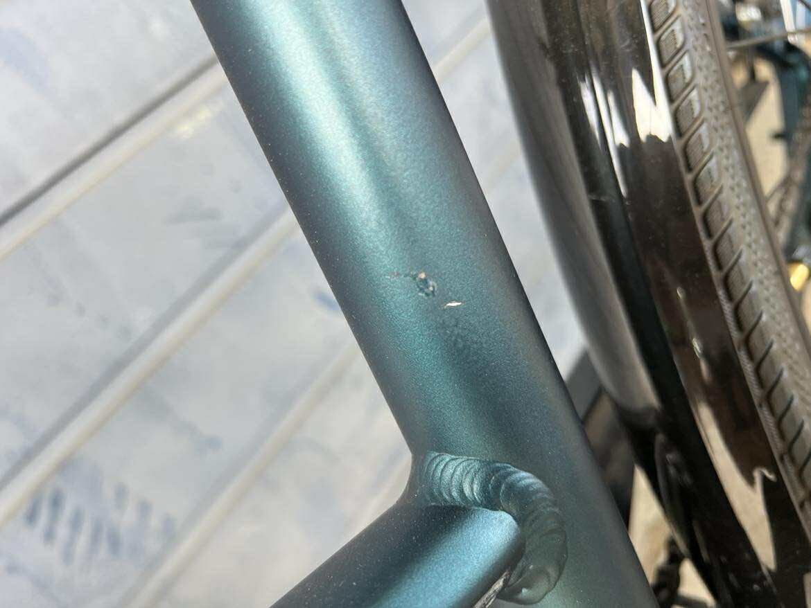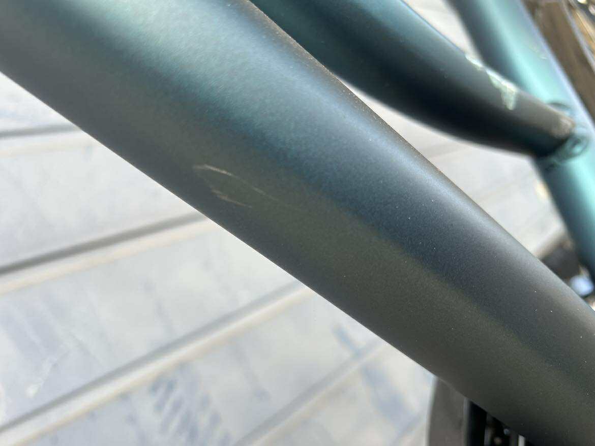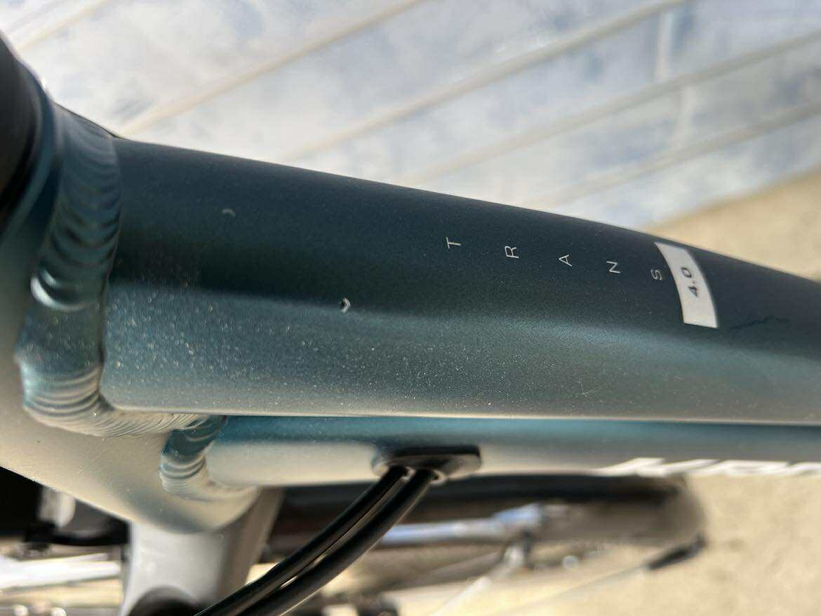 Rower Trans 4.0 Jest rowerem nowym. Rower ten posiada liczne odpryski lakiernicze można je dostrzec na zdjęciach. Posiada również w dolnej części ramy kilka uszkodzeń lakierniczych.