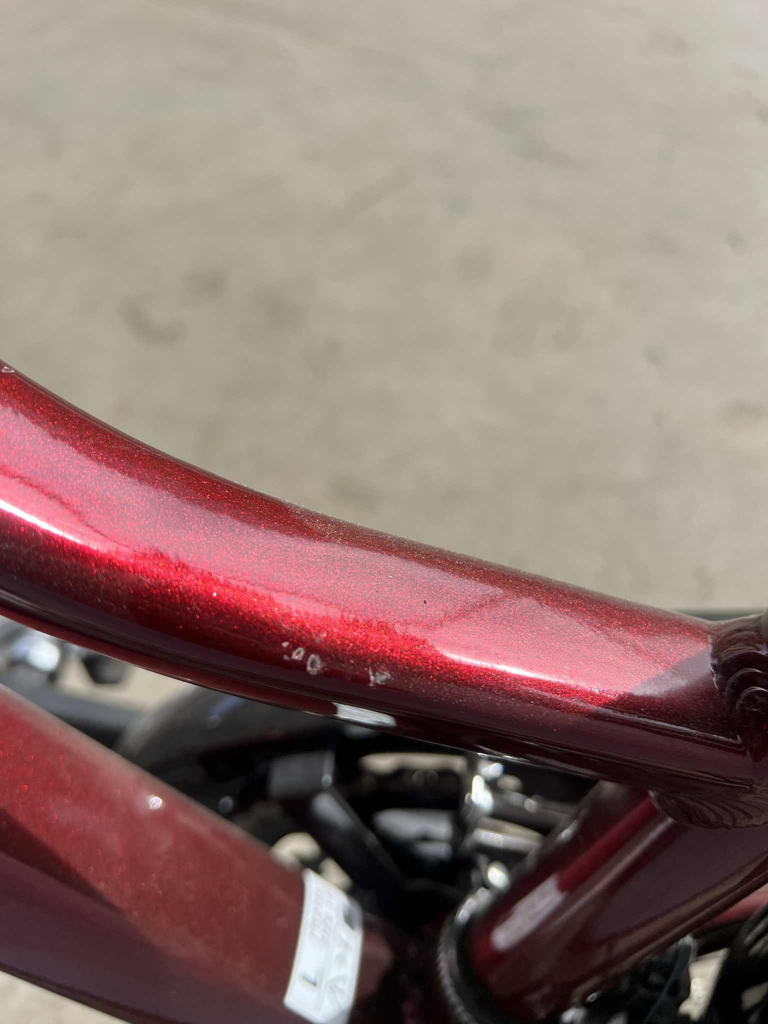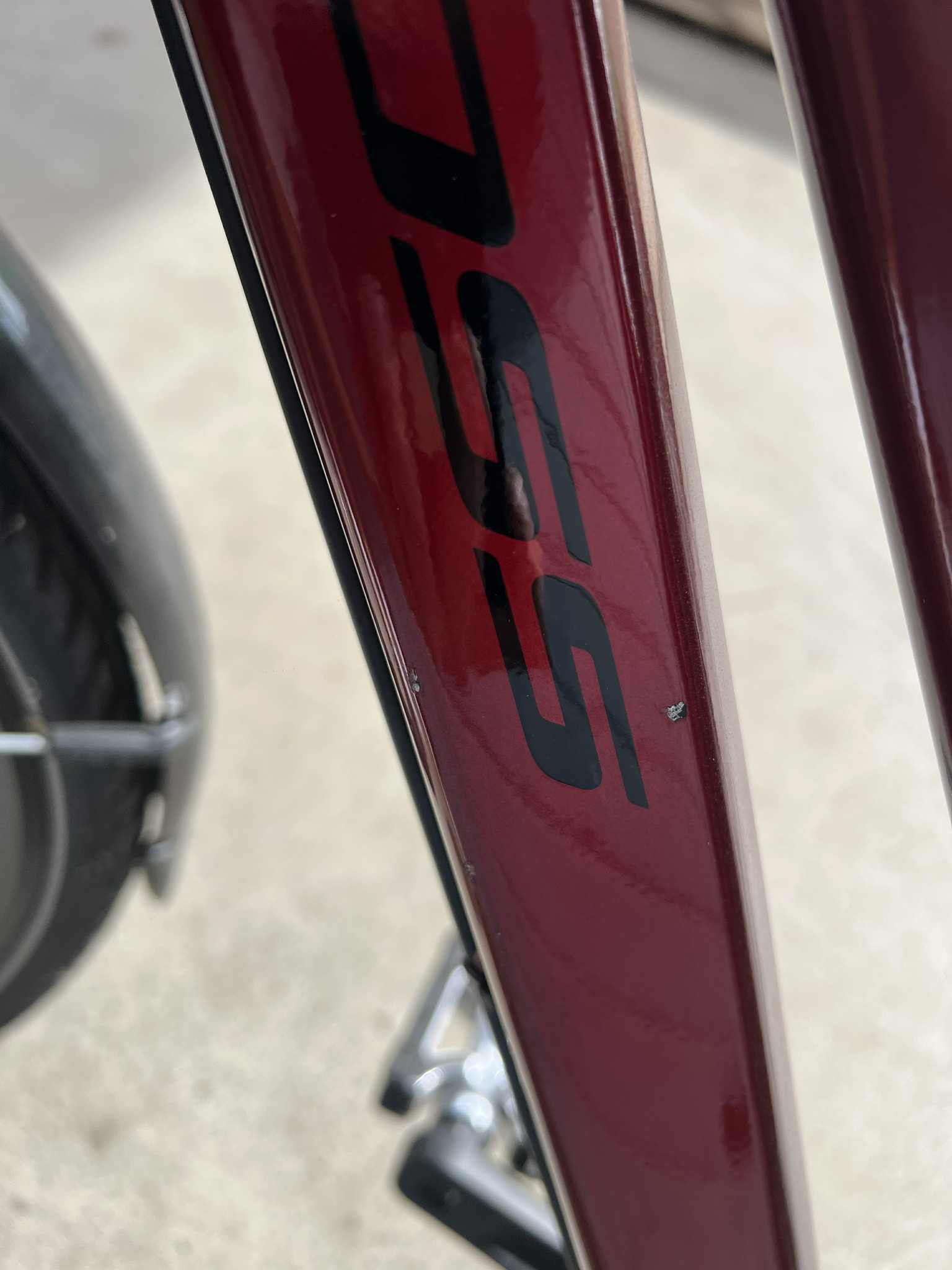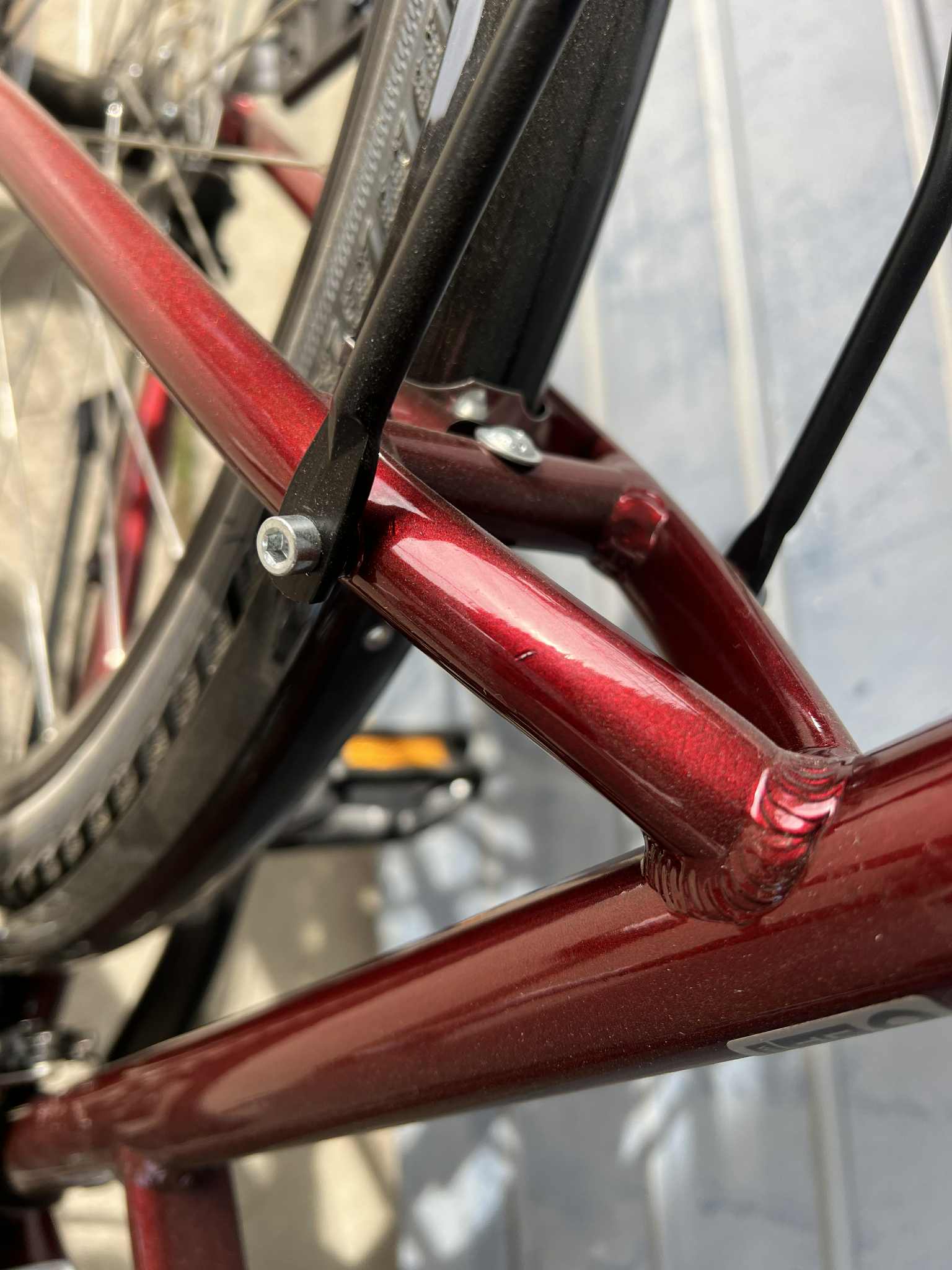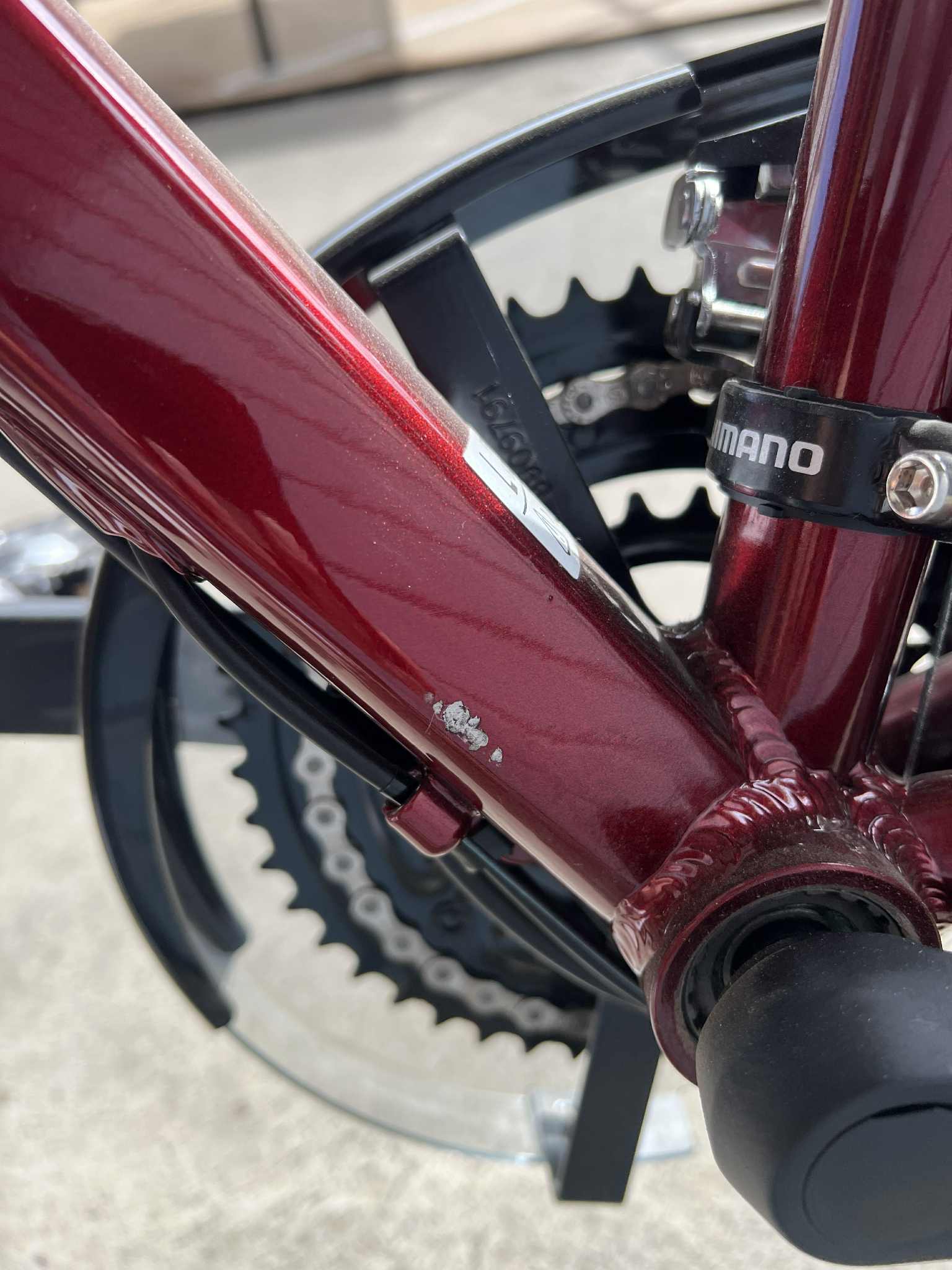 Rower Kross Trans 5.0 jest rowerem nowym nie używanym, natomiast posiada liczne odpryski oraz uszkodzenia lakieru widoczne na tylnym trójkącie na ramie oraz na przednim widelcu.