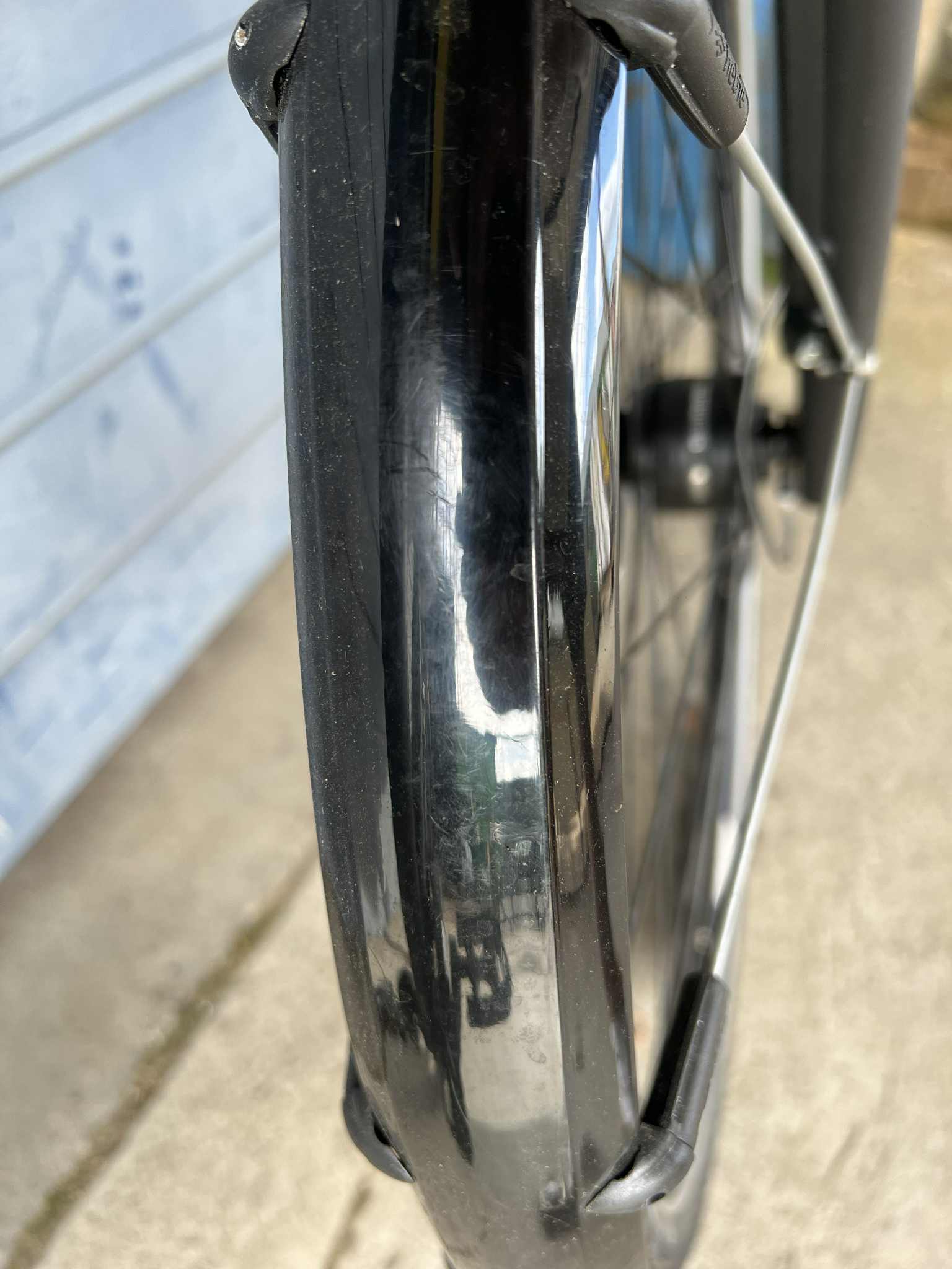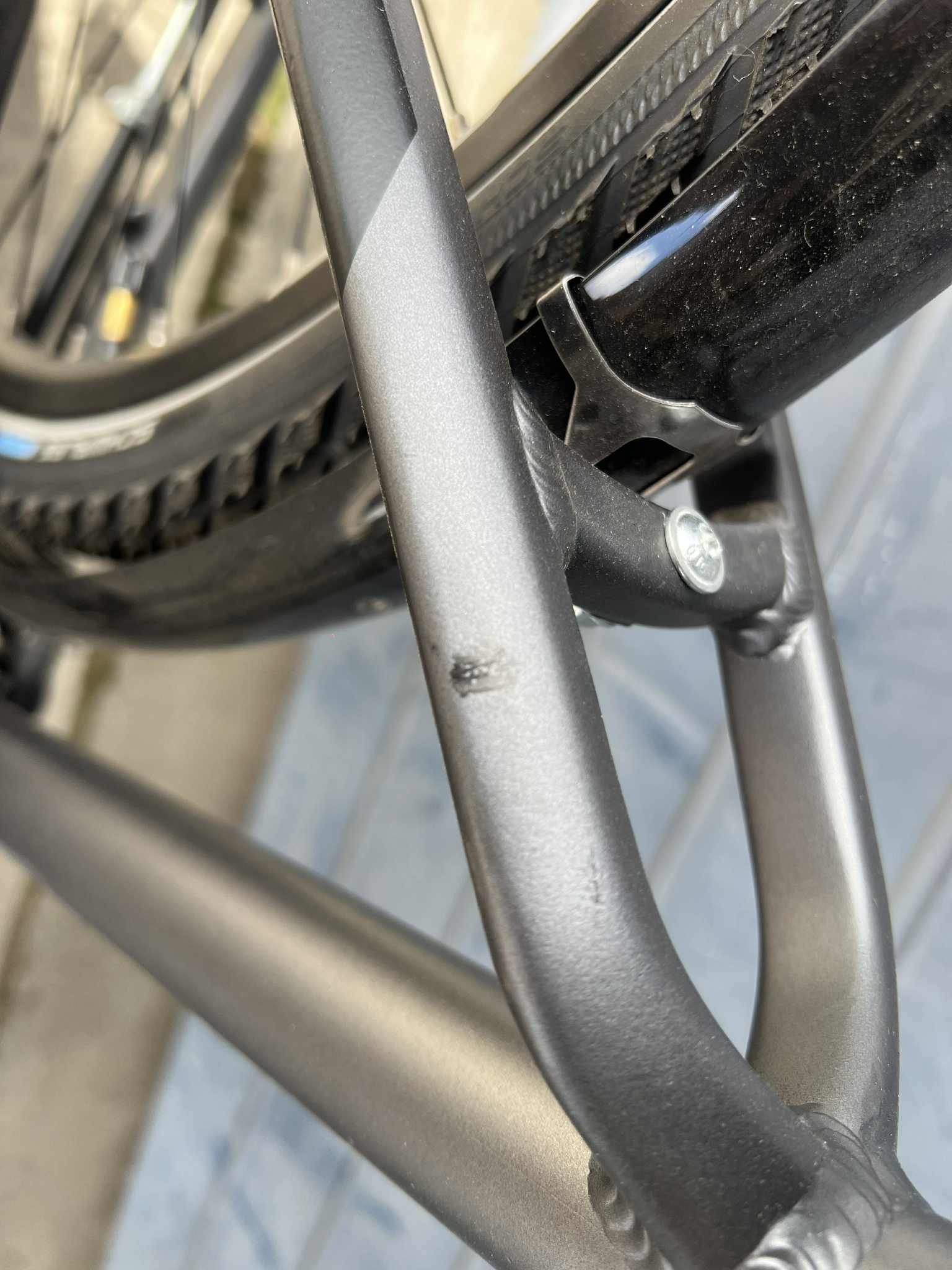 Rower posiada lekkie odrapanie w środkowej części ramy oraz posiada obdrapania na przednim oraz tylnym błotniku uszkodzenia kosmetyczne. Lekko Podrapana jest również korba.