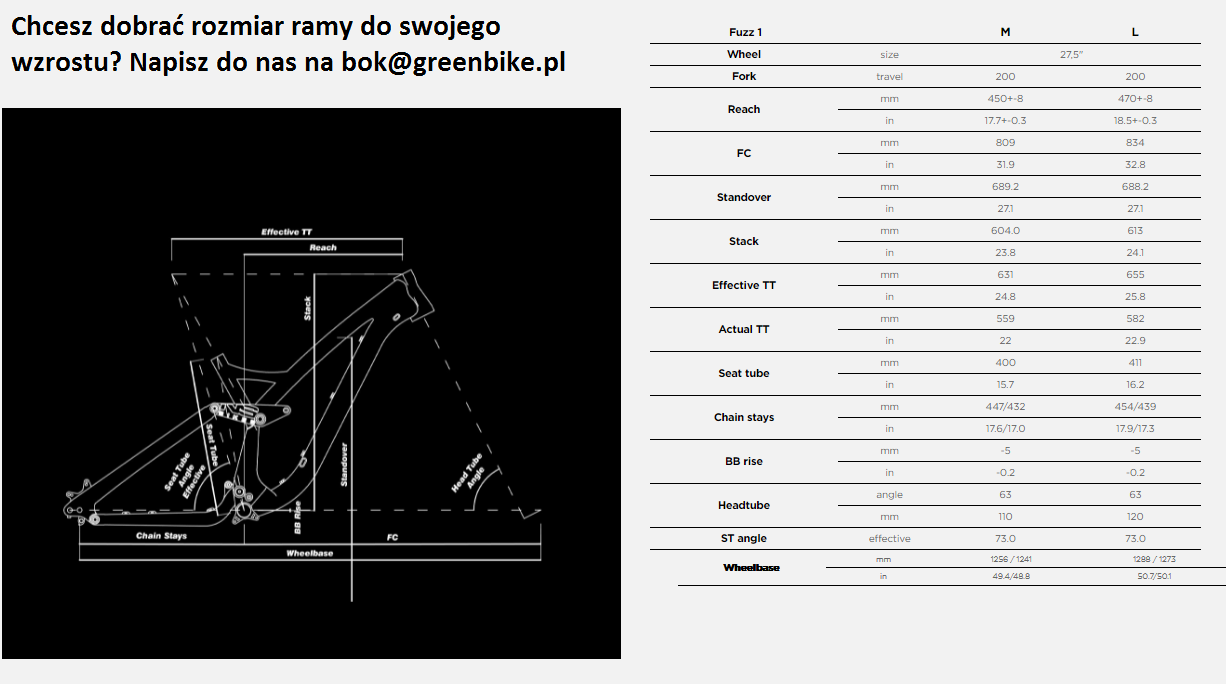 | Rama | NS Bikes Fuzz 27.5 w/ 203mm travel, 1.5'' head tube with custom reach adjustable offset cups (+/- 16mm), AL6061-T6 + AL6066-T6, custom formed and butted tubes |
