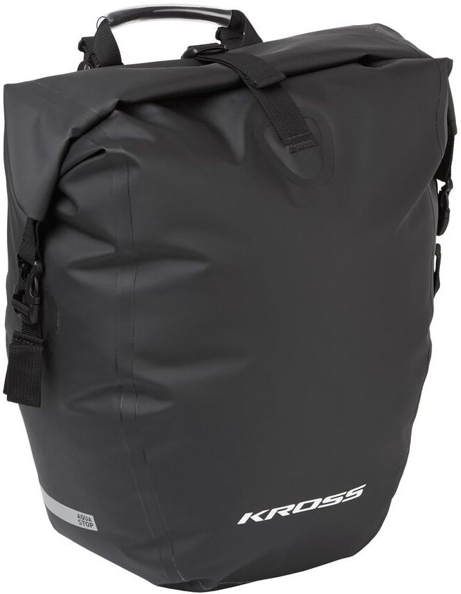 KROSS Aqua Stop to duża sakwa rowerowa montowana na tylnym bagażniku. Wykonana została z poliestru i charakteryzuje się pełną wodoodpornością, gwarantując przewożonemu bagażowi pełne bezpieczeństwo nawet w trakcie deszczu.