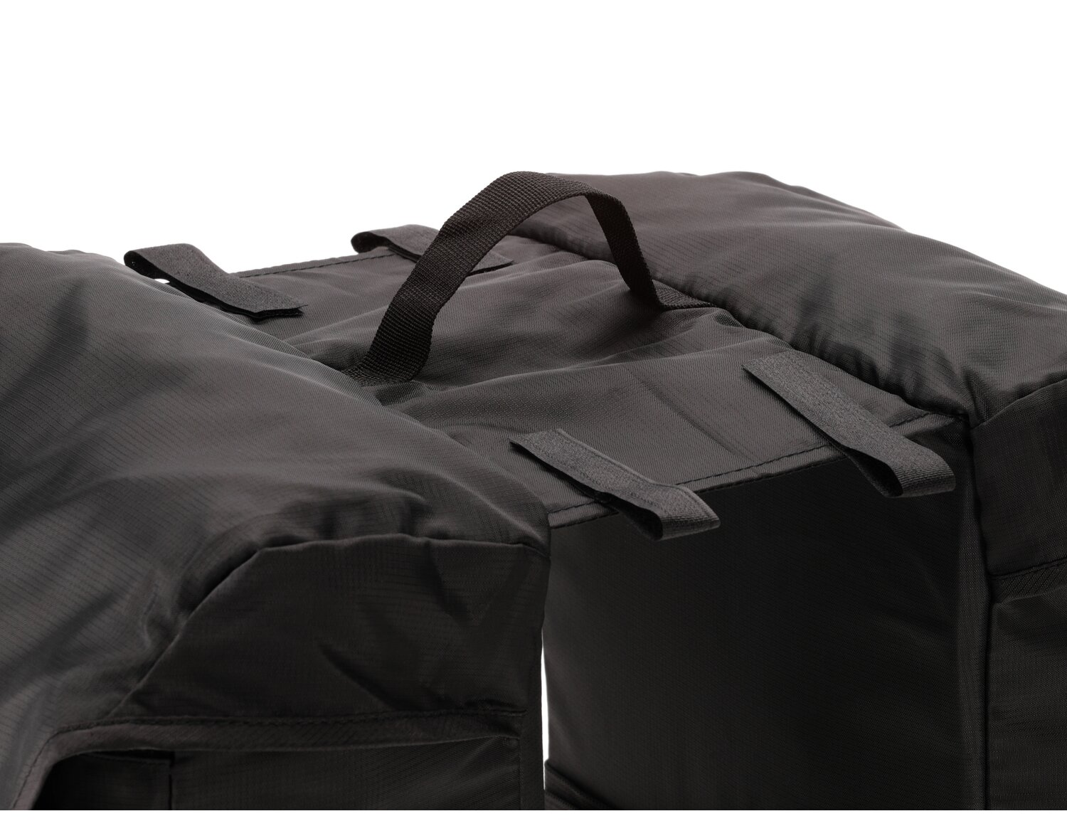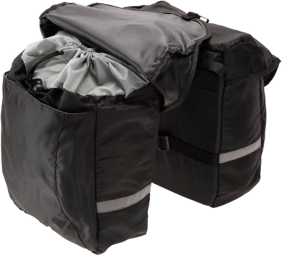 Torba Roamer Rear Bag jest dwustronną sakwą rowerową w kolorze czarnym ze srebrnym paskiem po boku, odpowiednią zarówno dla kobiet, jak i mężczyzn. Mocna konstrukcja i duża pojemność sprawiają, że sprawdzi się zarówno podczas bliższych, jak i dalszych wycieczek rowerowych.