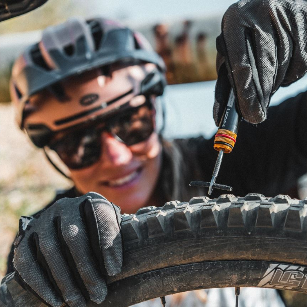 Lezyne Tubeless Insert Kit to najbardziej innowacyjny sposób na przewożenie zestawu naprawczego do opon bezdętkowych. Zaprojektowany dla kolarzy MTB i gravelowych, którzy cenią sobie czysty wygląd roweru i minimalizm. Narzędzie to bezpiecznie i dyskretnie chowa się wewnątrz otworu kierownicy, zastępując standardową zatyczkę. Dzięki temu zestaw naprawczy tubeless masz zawsze pod ręką, bez konieczności zabierania plecaka czy torebki podsiodłowej.